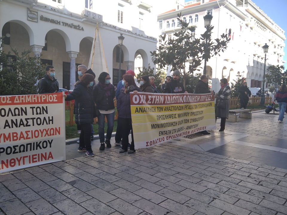 Στη συγκέντρωση συμμετείχαν τα σωματεία των νοσοκομείων Θεαγένειο, Ιπποκράτειο και Αγ. Δημήτριος, η Πρωτοβουλία υγειονομικών Θεσσαλονίκης ενάντια στους αποκλεισμούς καθώς και μέλη του Κοινωνικού Ιατρείου Θεσσαλονίκης που ζητούν να ανοίξει το νοσοκομείο Λοιμωδών που παραμένει κλειστό εδώ και οχτώ χρόνια.