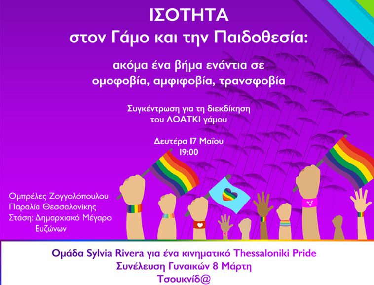 • Διοργανώνουμε πανελλαδική ημέρα δράσης για τον λοατκι γάμο τη Δευτέρα 17 Μαΐου – Παγκόσμια Ημέρα κατά της Ομοφοβίας, Αμφιφοβίας και Τρανσφοβίας: