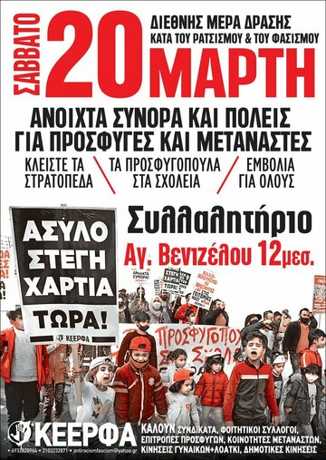«Στις 20 Μάρτη ξεσηκωνόμαστε στην Ελλάδα και σε όλο τον Πλανήτη ενάντια στο ρατσισμό και το φασισμό!
