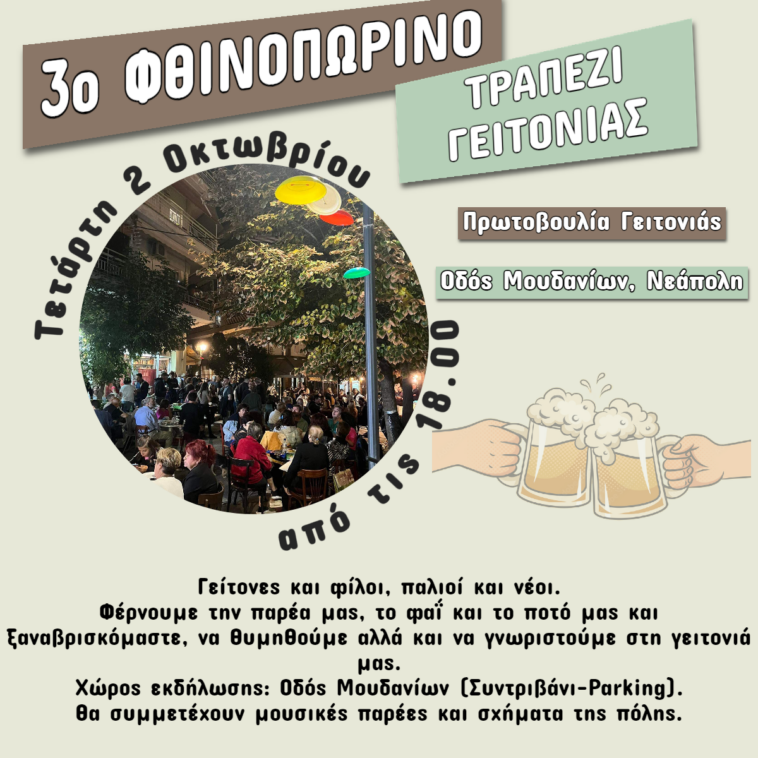3ο Φθινοπωρινό τραπέζι γειτονιάς στην οδό Μουδανίων στη Νεάπολη