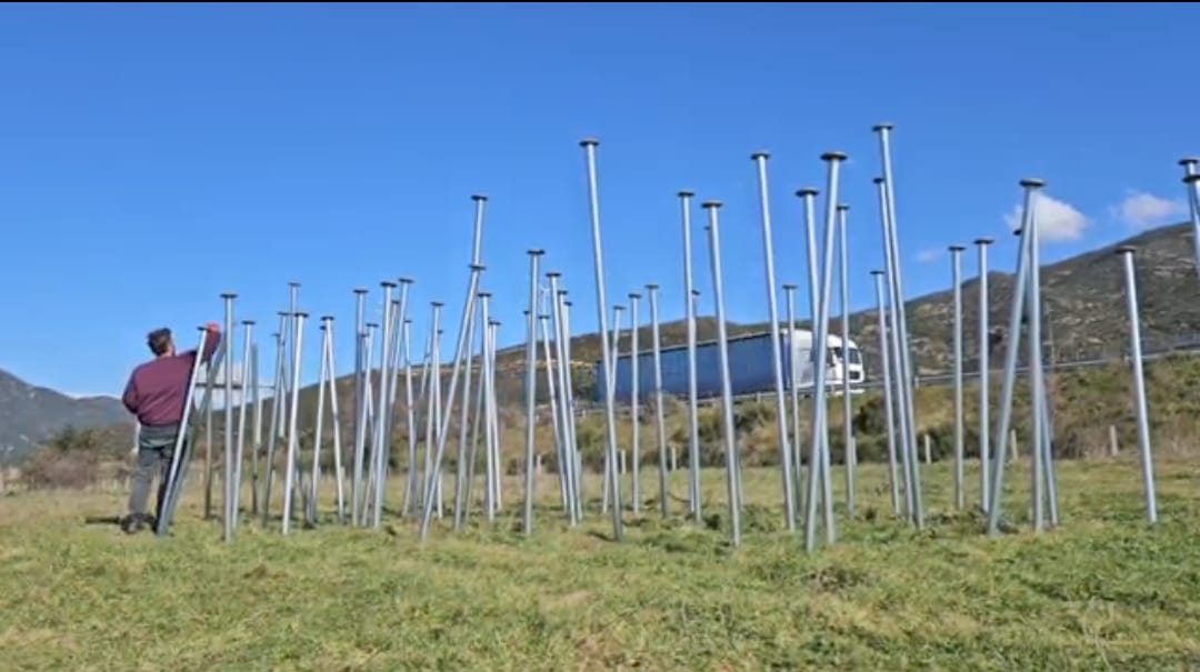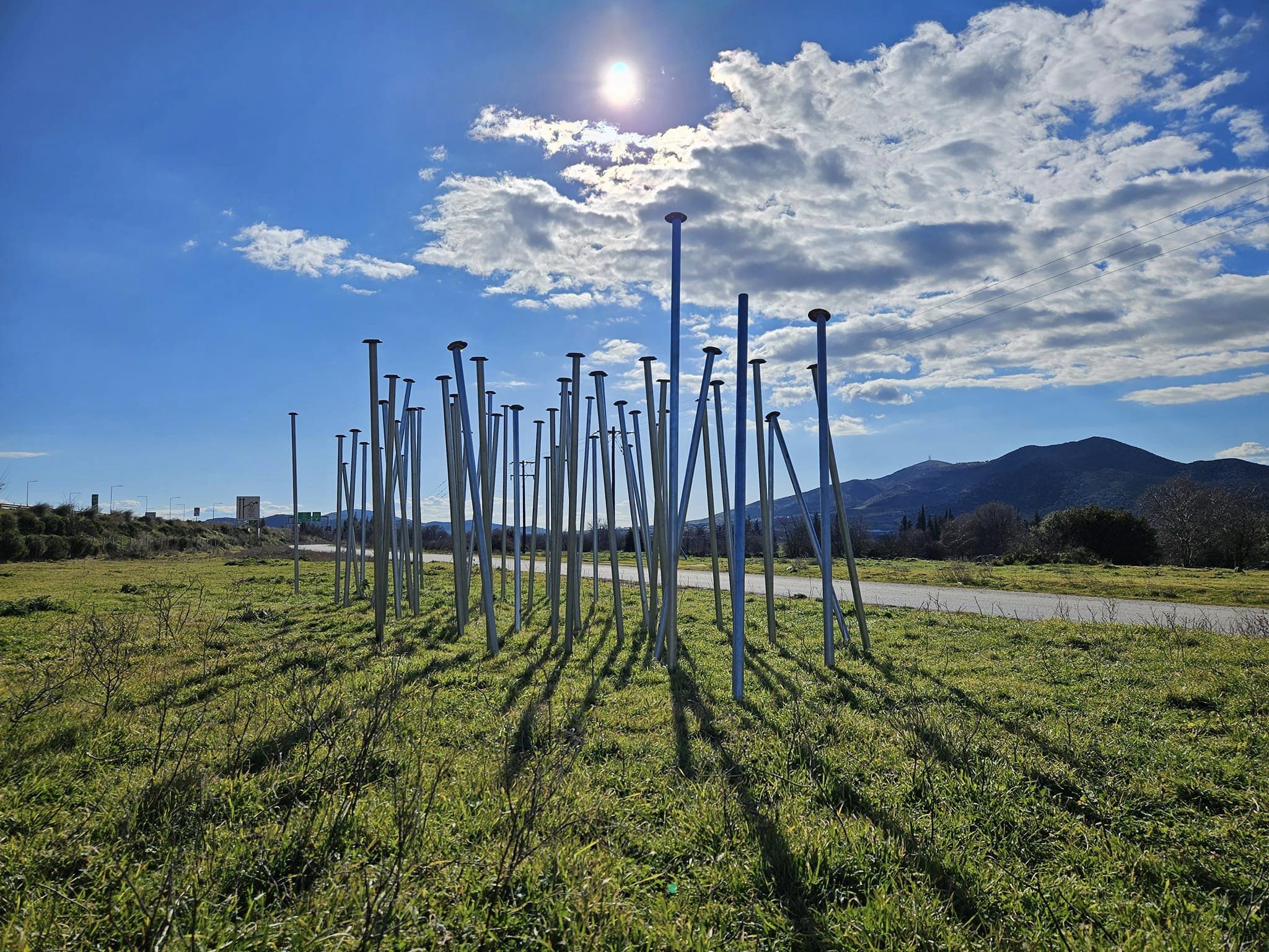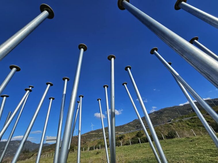 “58 καρφιά στα Τέμπη”. 58 μεταλλικοί σωλήνες 2-2,5μετρων . Εγκατάσταση με διαστάσεις 15x5x2,5μετρα.