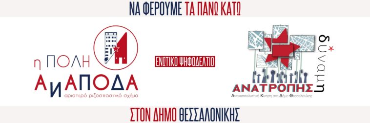 Διακηρυκτικός στόχος της συνεργασίας των σχημάτων Πόλη Ανάποδα και Δύναμη Ανατροπής είναι να εκφράσει στο Δημοτικό Συμβούλιο τις ανάγκες του λαϊκού κόσμου, ιδιαίτερα της εργασίας και της νεολαίας, αλλά και κάθε αδύναμου ανθρώπου, να υπερασπιστεί το δημόσιο συμφέρον και να μεταφέρει τις διεκδικήσεις των λαϊκών γειτονιών και στο Δημοτικό Συμβούλιο φωτίζοντας όσα συμβαίνουν στις πίσω αυλές της πόλης.
