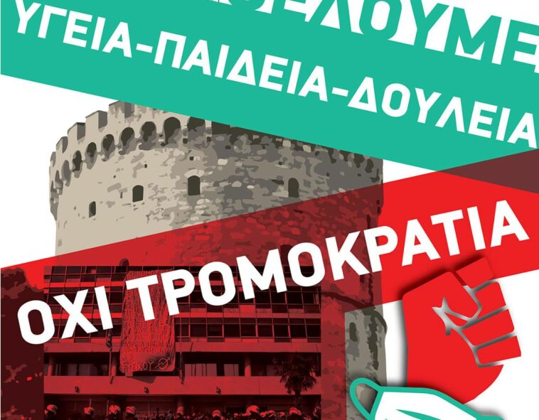 Μεγάλη αναμένεται να είναι η συμμετοχή στη διαδήλωση που έχει καλεστεί για το Σάββατο 27/3/2021, στις 12:00, στο Λευκό Πύργο από την Πρωτοβουλία Συλλόγων Φορέων & Οργανώσεων της Θεσσαλονίκης. Το κεντρικό σύνθημα της διαδήλωσης είναι «Θέλουμε Υγεία, Παιδεία, Δουλειά και Κοινωνικά Δημοκρατικά Δικαιώματα – Όχι αστυνομοκρατία και καταστολή», ενώ καλέσματα έχουν απευθύνει φοιτητικοί σύλλογοι, σωματεία εργαζομένων, ΕΛΜΕ, δημοτικές κινήσεις, πρωτοβουλίες πολιτών και οργανώσεις της αριστεράς και του αντιεξουσιαστικού χώρου.