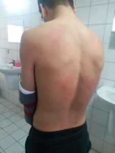 Μετά από μια ώρα έφτασε ένα λευκό βαν και όλοι αναγκάστηκαν να μπουν πίσω: «Μας συμπεριφέρονταν σαν σκουπίδια», μας είπε μια γυναίκα. «Μας κλώτσησαν και μας χτύπησαν, ακόμη και μερικά από τα παιδιά χτυπήθηκαν».