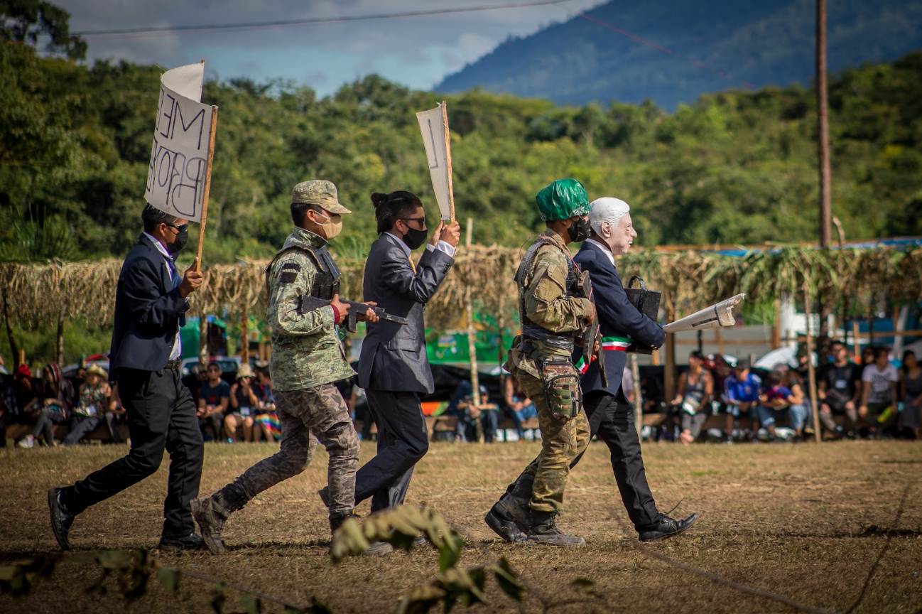 Γνωρίζουμε, για παράδειγμα, ότι η κυβέρνηση έχει πραγματοποιήσει αεροφωτογραμμετρία για την καταγραφή των αυτόνομων κοινοτήτων στην Τσιάπας, μια πρακτική ελέγχου της περιοχής μεταμφιεσμένη σε τεχνική επιτήρηση. Από τις διαρροές του Guacamaya Leaks προκύπτει επίσης ότι ορισμένες ομάδες εκπαίδευσης της αστυνομίας διατηρούν δεσμούς με την ισραηλινή Μοσάντ, γεγονός που δείχνει ότι η αντιεξέγερση δεν είναι μόνο τοπική αλλά μέρος ενός διεθνούς μηχανισμού· δείτε για παράδειγμα το αμερικανικό πολεμικό αεροσκάφος που προσγειώθηκε πρόσφατα στο Μεξικό για να εκπαιδεύσει τα σώματα ασφαλείας του Γκαρσία Χαρφούτς [υπουργός Ασφάλειας και Προστασίας του Πολίτη]. Τον περασμένο Απρίλιο, κατά τη διάρκεια του ζαπατιστικού φεστιβάλ τέχνης Rebel y Revel (Arte), το κράτος έστειλε οχήματα της Εθνικής Φρουράς για να περιπολούν γύρω από το CIDECI [στο Σαν Κριστόμπαλ δε λας Κάσας, όπου γινόταν το φεστιβάλ]. Υπήρχαν εκεί χιλιάδες άνθρωποι από τις αυτόνομες κοινότητες και διεθνείς αλληλέγγυοι· ήταν μια σαφής ενέργεια εκφοβισμού.
