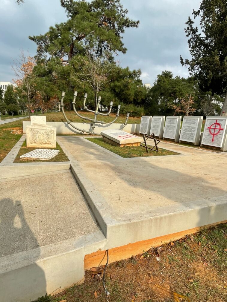 «Η Ισραηλιτική Κοινότητα Θεσσαλονίκης καταδικάζει απερίφραστα τον βανδαλισμό από αγνώστους του Μνημείου που ανεγέρθηκε το 2014 εντός της Πανεπιστημιούπολης του ΑΠΘ και αφιερώθηκε στο Παλαιό Εβραϊκό Νεκροταφείο.