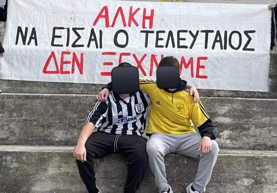 Η φωτογραφία με τα παιδιά που κάθονται αγκαλιά φορώντας φανέλες του Άρη και του ΠΑΟΚ, είναι ένα άνοιγμα της συζήτησης για το μέχρι που μπορεί να φτάσει η διαμάχη για τη φανέλα και τα χρώματα των διάφορων αθλητικών ομάδων.