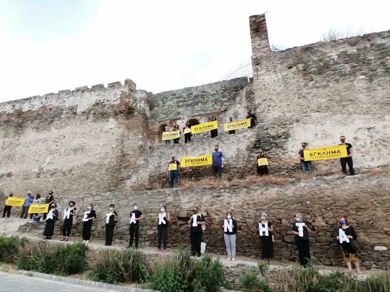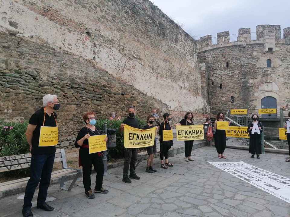 Σιωπηρή διαμαρτυρία στον Πύργο Τριγωνίου πραγματοποιήθηκε την Πέμπτη 17 Ιουνίου από την Κίνηση Πολιτών Θεσσαλονίκης για την προστασία της πολιτιστικής κληρονομιάς.