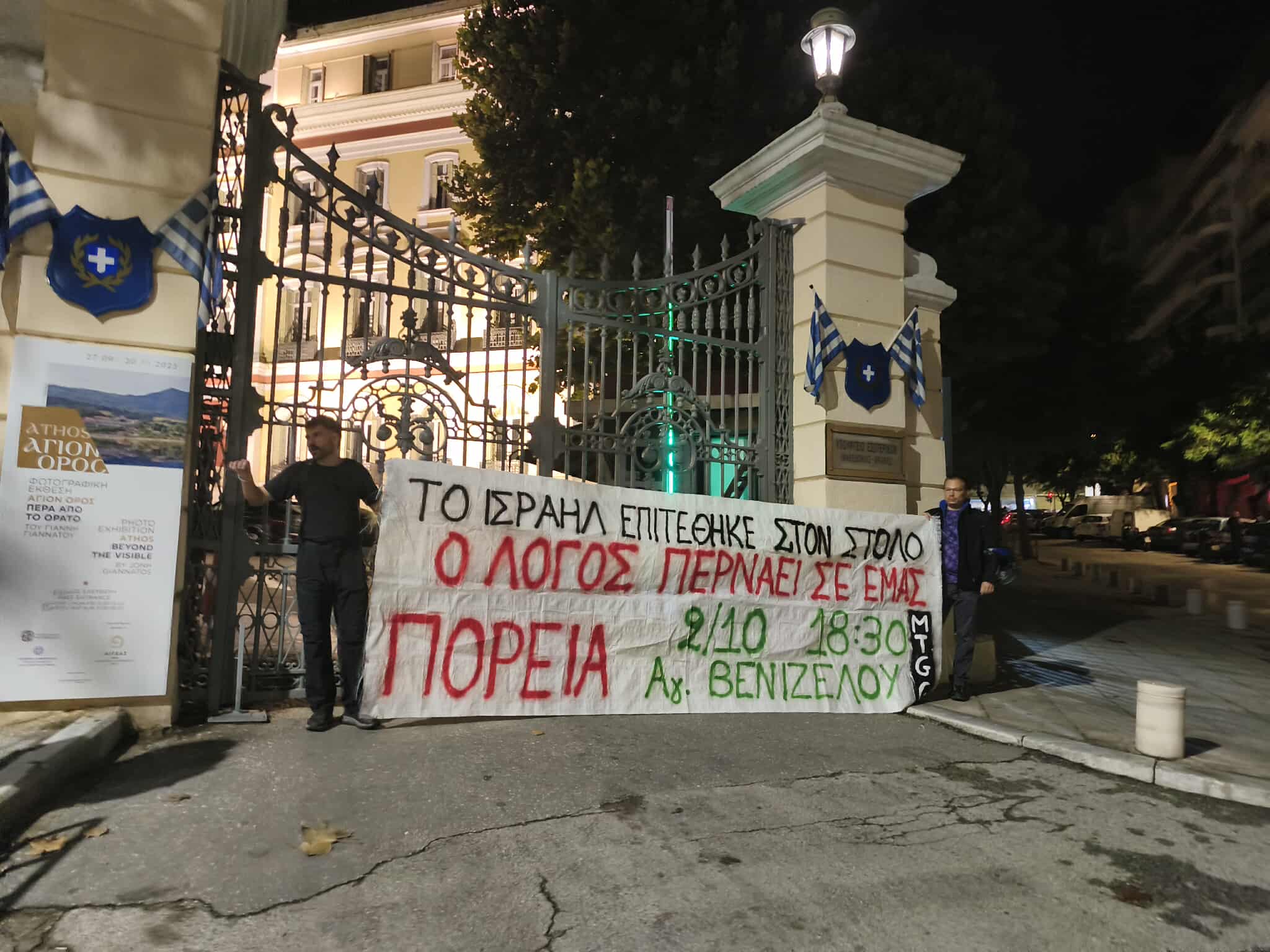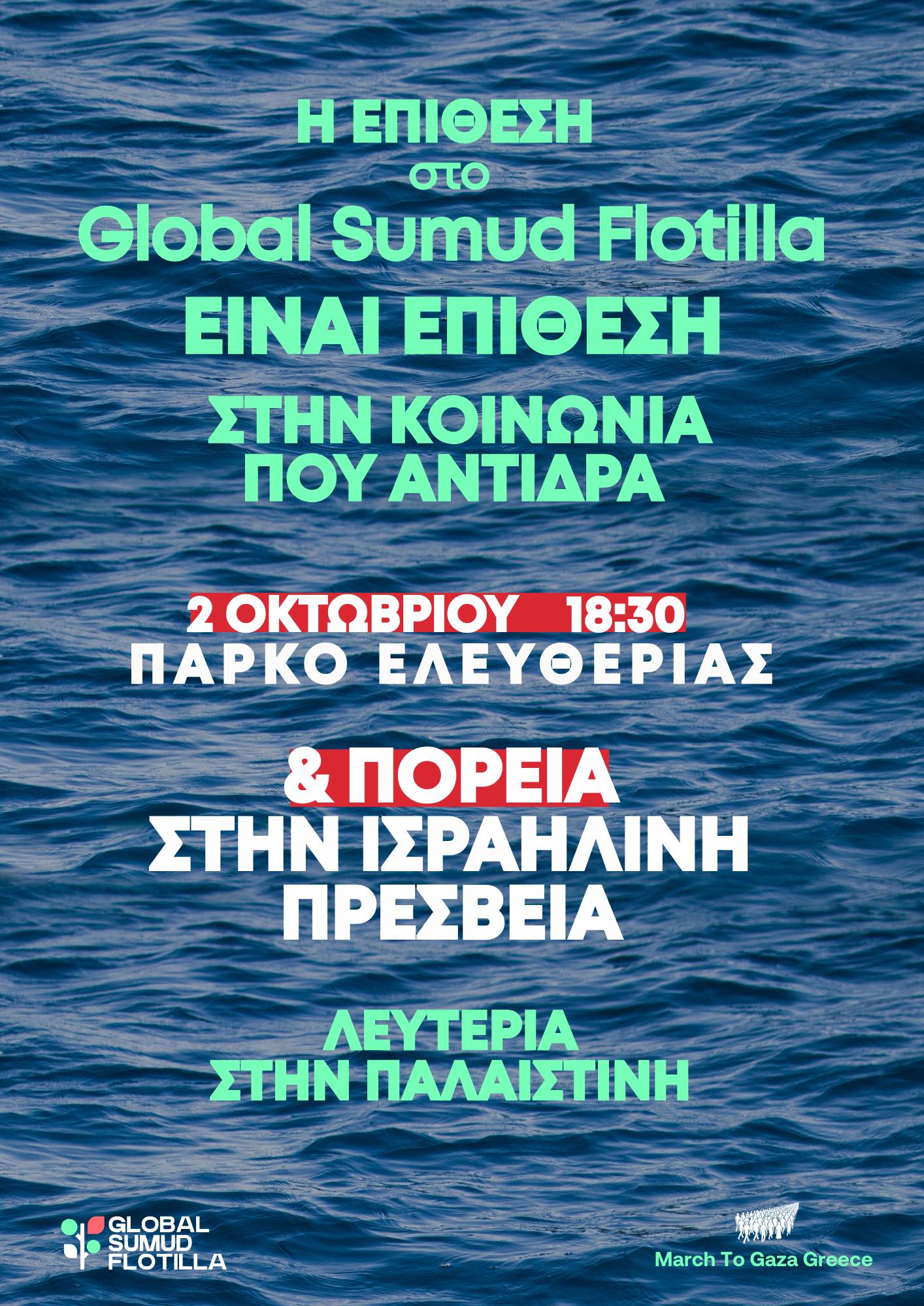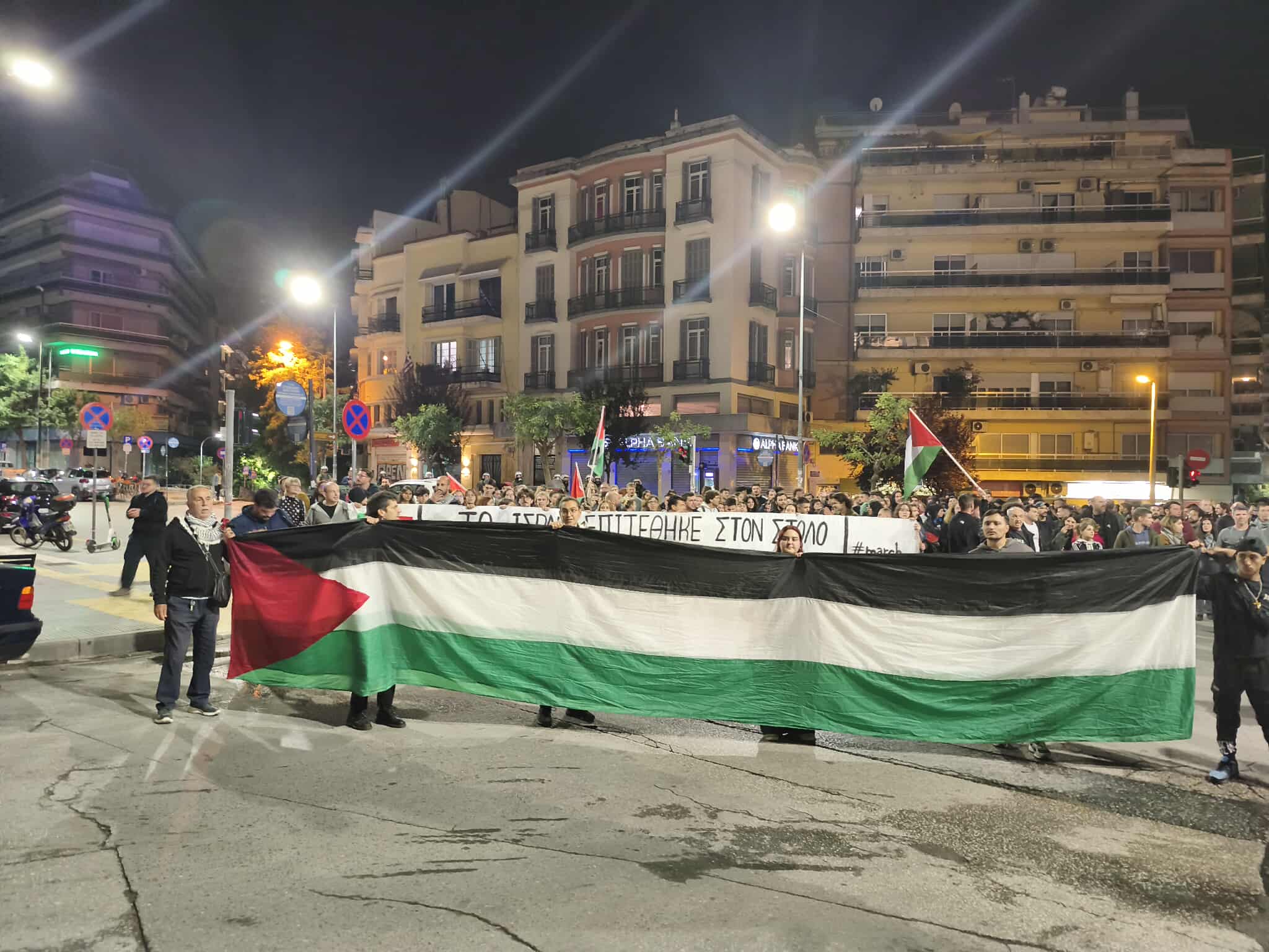 Χθες το βράδυ συγκέντρωση και πορεία πραγματοποιήθηκε στην Αθήνα, στη Θεσσαλονίκη και πολλές άλλες πόλεις με πλήθος διαδηλωτών να ζητά τον τερματισμό της γενοκτονίας στη Γάζα και την απελευθέρωση του πληρώματος του στόλου χαρακτηρίζοντας το Ισραήλ κράτος εγκληματία.