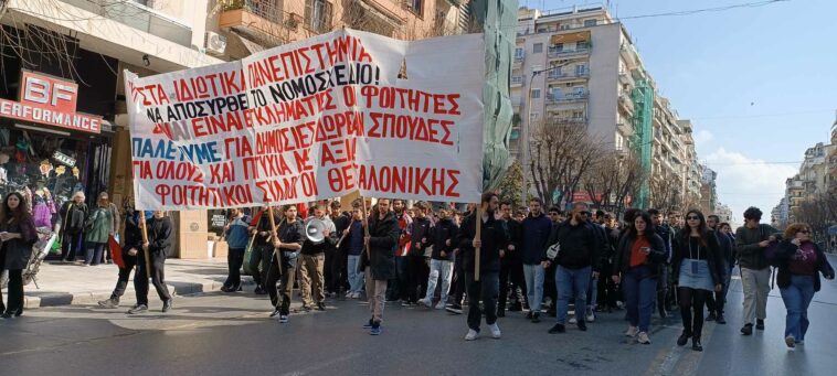 «Οι φοιτητικοί σύλλογοι δεν τρομοκρατούμαστε απέναντι στην καταστολή, τις απειλές και τις διώξεις» τονίζει σε ανακοίνωση του το Συντονιστικό Γενικών Συνελεύσεων και Καταλήψεων Θεσσαλονίκης που συνεδρίασε μετά την μαζική πανεκπαιδευτική πορεία το μεσημέρι της Πέμπτης.