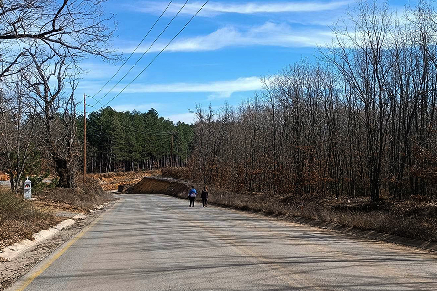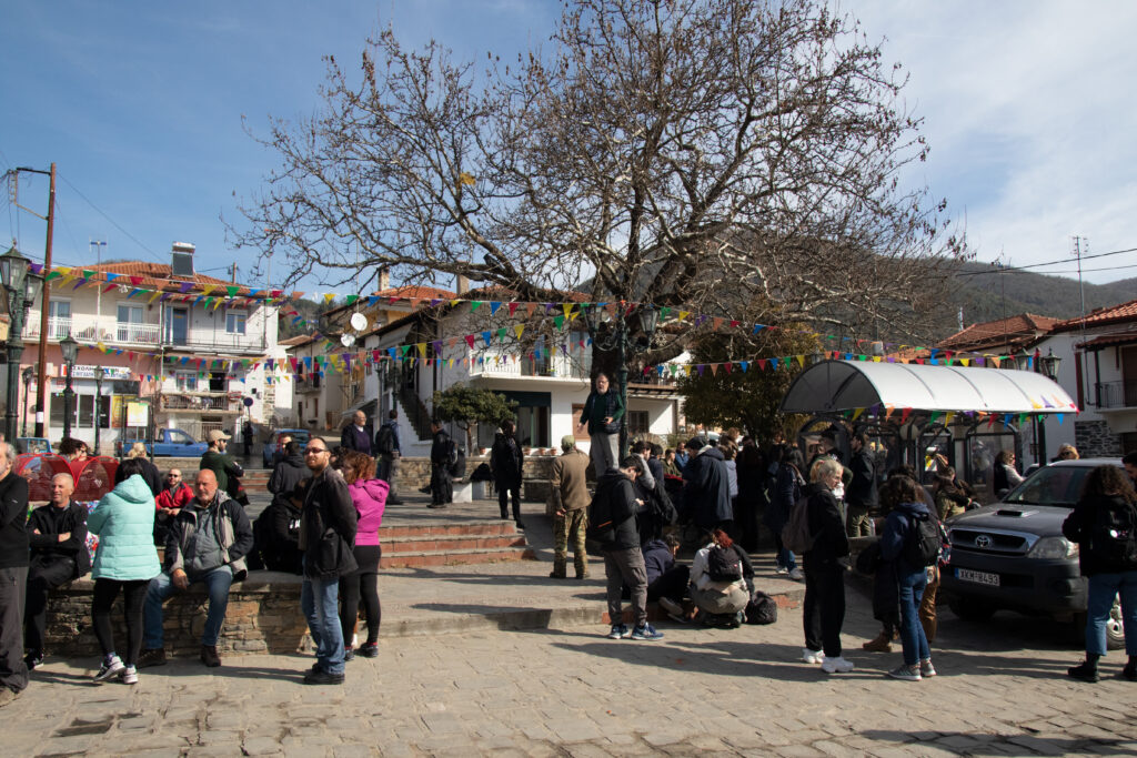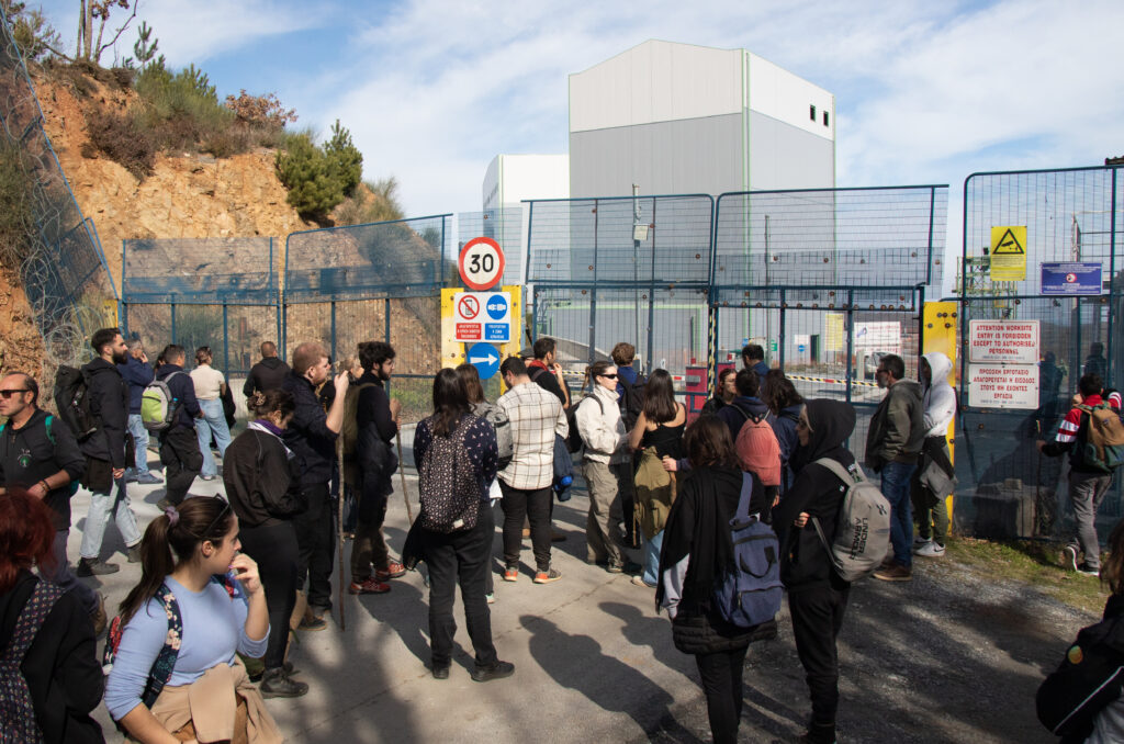 Μέσα από ένα μονοπάτι που ξεκινούσε από την Μ. Παναγιά, αντικρύσαμε για ακόμη μια φορά την ομορφιά του δάσους που απειλείται, ακούσαμε τον ήχο του νερού και φτάσαμε στο ζοφερό βασίλειο της Ελληνικός Χρυσός. Εκεί που η ομορφιά εξαφανίζεται και τη θέση της παίρνουν κομμένες βελανιδιές και ένα τεράστιο αποψιλωμένο τοπίο, στο οποίο φαντάζει τρομακτικό το εργοστάσιο εμπλουτισμού της εταιρείας περιφραγμένο από κιγκλιδώματα. Κοντά στο εργοστάσιο εμπλουτισμού βρίσκεται και το ήδη μεγάλο σε διάμετρο και βάθος open pit όπου πρόκειται να ξεκινήσουν οι επιφανειακές εξορύξεις.