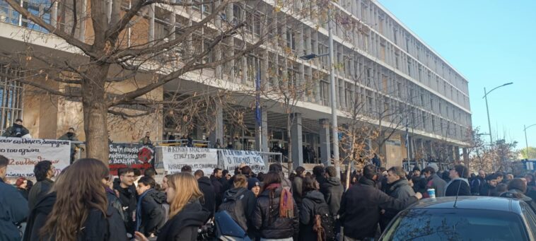 Παράλληλα συγκέντρωση αλληλεγγύης στους συλληφθέντες πραγματοποιήθηκε από νωρίς το πρωί έξω από τα δικαστήρια.