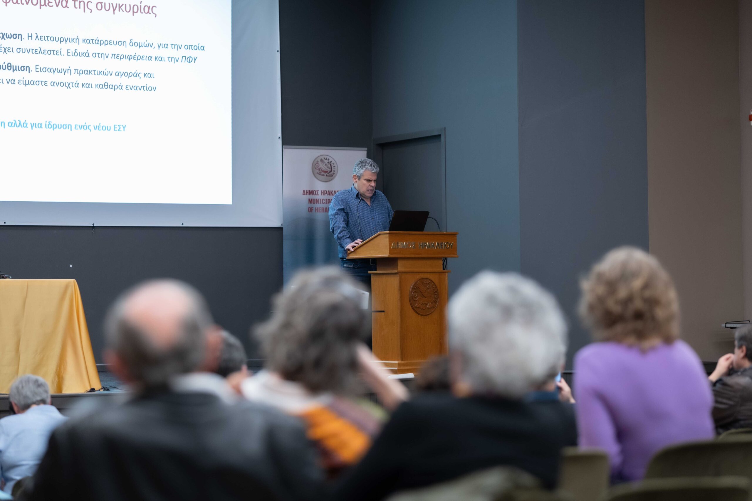 Τη συζήτηση έκλεισε ο Ανδρέας Ξανθός, πρώην υπουργός Υγείας, γιατρός στο Ρέθυμνο και μέλος της Νέας Αριστεράς, εκφράζοντας την ανάγκη μιας πολιτικής διεξόδου για τη δημιουργία εναλλακτικής στρατηγικής στην αποδιοργάνωση των δημόσιων συστημάτων υγείας.