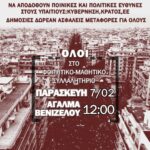 Σε ένδειξη διαμαρτυρίας, καλεί σε συμμετοχή στην εξαγγελθείσα απεργία της ΑΔΕΔΥ στις 28/02, για το δυστύχημα των Τεμπών, αναδεικνύοντας την ανάγκη υπεράσπισης της Διαφάνειας, της Δικαιοσύνης και της Θεσμικής Ανεξαρτησίας.