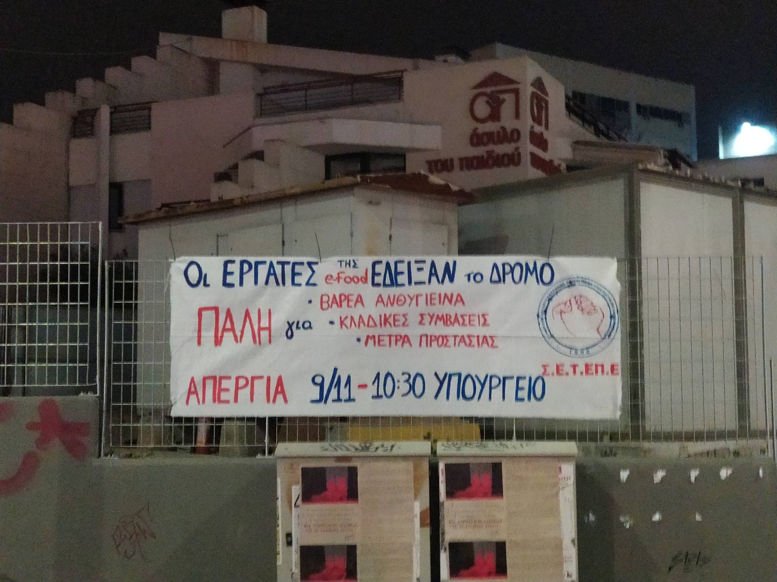 «Μετά την Γενική συνέλευση του Συνδικάτου που πραγματοποιήθηκε στις 2/11 και την απόφαση των εργαζομένων για συμμετοχή στην απεργία, δίνουμε όλες μας τις δυνάμεις στις 9/11 να δοθεί μια απάντηση στα σχέδια κυβέρνησης και εργοδοσίας! Λίγο καιρό πριν, οι μεγαλειώδεις κινητοποιήσεις των συναδέλφων της efood, έδειξαν τον δρόμο! Μέσα από τον αγώνα και μέσα από την συσπείρωση μας, μπορούμε να καταφέρουμε τα πάντα. Όλοι μαζί μπορούμε να γίνουμε το ποτάμι που θα τους τσακίσει! Όλοι μαζί μπορούμε να κάνουμε κουρελόχαρτο τον νόμο έκτρωμα Χατζιδάκη! Όλοι μαζί μπορούμε να επιβάλουμε τα δίκαια αιτήματα μας! Διεκδικούμε τώρα: