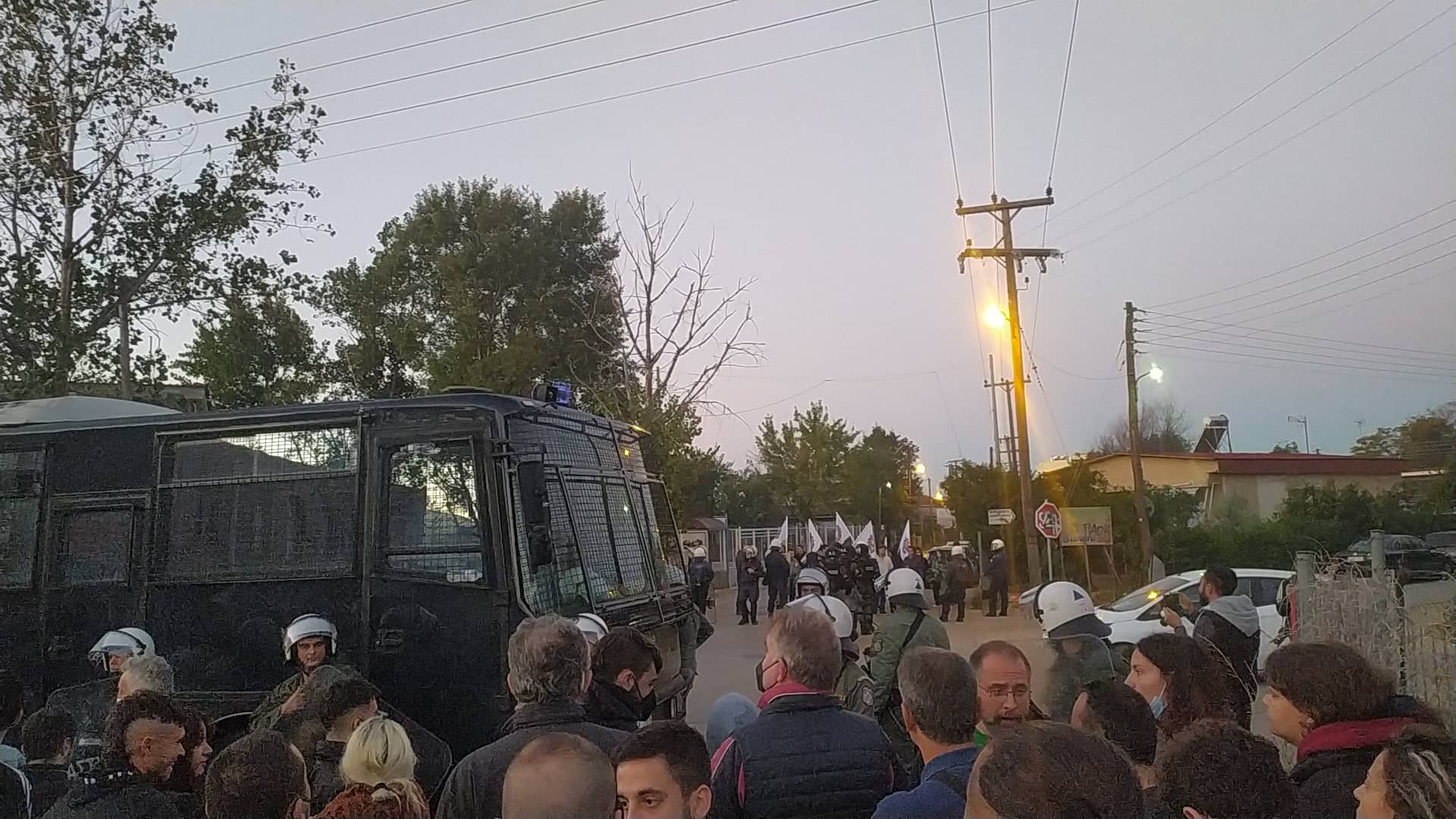 Οι απεργοί και οι αλληλέγγυοι ήρθαν αντιμέτωποι με ένα πρωτοφανές σκηνικό από την μεριά της εργοδοσίας και της αστυνομίας, με μια κλούβα ΜΑΤ να κλείνει κάθετα την οδό 28ης Οκτωβρίου. Πρόκειται για την κεντρική οδό του Καλοχωρίου, την οποία χρησιμοποιούν χιλιάδες εργαζόμενοι καθημερινά για να πάνε στη δουλειά τους. Αποτέλεσμα να προκληθεί σύγχυση στους εργαζόμενους οδηγούς, με απώτερο σκοπό φυσικά να τους στρέψουν κατά των απεργών.