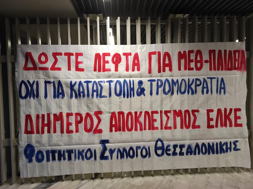 «Ένα χρόνο τώρα δεν έχει παρθεί ούτε ένα μέτρο για να επιστρέψουμε στις σχολές μας, ούτε ένα μέτρο για την στήριξη των φοιτητών και της Εκπαιδευτικής διαδικασίας. Η κυβέρνηση δίνει λεφτά στον ΕΛΚΕ ο οποίος είναι ο ειδικός λογαριασμός κονδυλίων έρευνας του ΑΠΘ ένας φορέας ο οποίος από την μια διαχειρίζεται όλη την οικονομική δραστηριότητα του ΑΠΘ ενώ από την άλλη είναι αυτός ο φορέας που χρηματοδοτεί την επιχειρηματική δραστηριότητα εντός των σχολών μας και όχι τις πραγματικές και καθημερινές ανάγκες των φοιτητών. Η κυβέρνηση αξιοποιεί την πανδημία για να κρατήσει κλειστά τα Πανεπιστήμια και να περνάει τα μέτρα που χρειάζονται για να εναρμονιστεί όλο και περισσότερο το πανεπιστήμιο με το πρότυπο του ευρωπαϊκού πανεπιστημίου, να εξυπηρετεί καλύτερα τις ανάγκες της αγοράς. Χαρακτηριστική είναι η εξέλιξη για όλο και πιο έντονη ανταποδοτικότητα των ιδρυμάτων. Ενώ η κρατική χρηματοδότηση πέφτει τα ερευνητικά προγράμματα τρέχουν και τα μεταπτυχιακά προγράμματα με δίδακτρα πολλαπλασιάζονται. Αυτό εκφράζεται και στην καθημερινότητα μας που ενώ βρέθηκε ακόμα ένα κρούσμα στην εστία δεν έχουν κοπεί τα απαραίτητα κονδύλια για μέτρα υγειονομικής προστασίας, αντισηπτικά και απολυμάνσεις και δεν ικανοποιείτε το πάγιο αίτημα του συλλόγου μας για μονιμοποίηση κλιμακίου του ΕΟΔΥ στην εστία.»