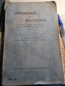 -«Οικονομία και Φιλοσοφία», εκδόσεις Πανεπιστήμιο Θεσσαλονίκης 1931