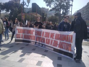 Στις κινητοποιήσεις συμμετείχαν και οι φοιτητές του ΔΙΠΑΕ που διαμαρτύρονται στη μεταφορά των σχολών τους από τη Θεσσαλονίκη στις Σέρρες.