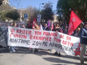 Με συνθήματα ενάντια στην φτώχεια και τον πόλεμο ξεκίνησε λίγο μετά τις 11 η πορεία πρωτοβάθμιων σωματείων, κινηματικών συλλογικοτήτων και οργανώσεων της Αριστεράς και του αντιεξουσιαστικού χώρου από την Καμάρα.