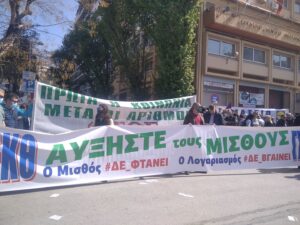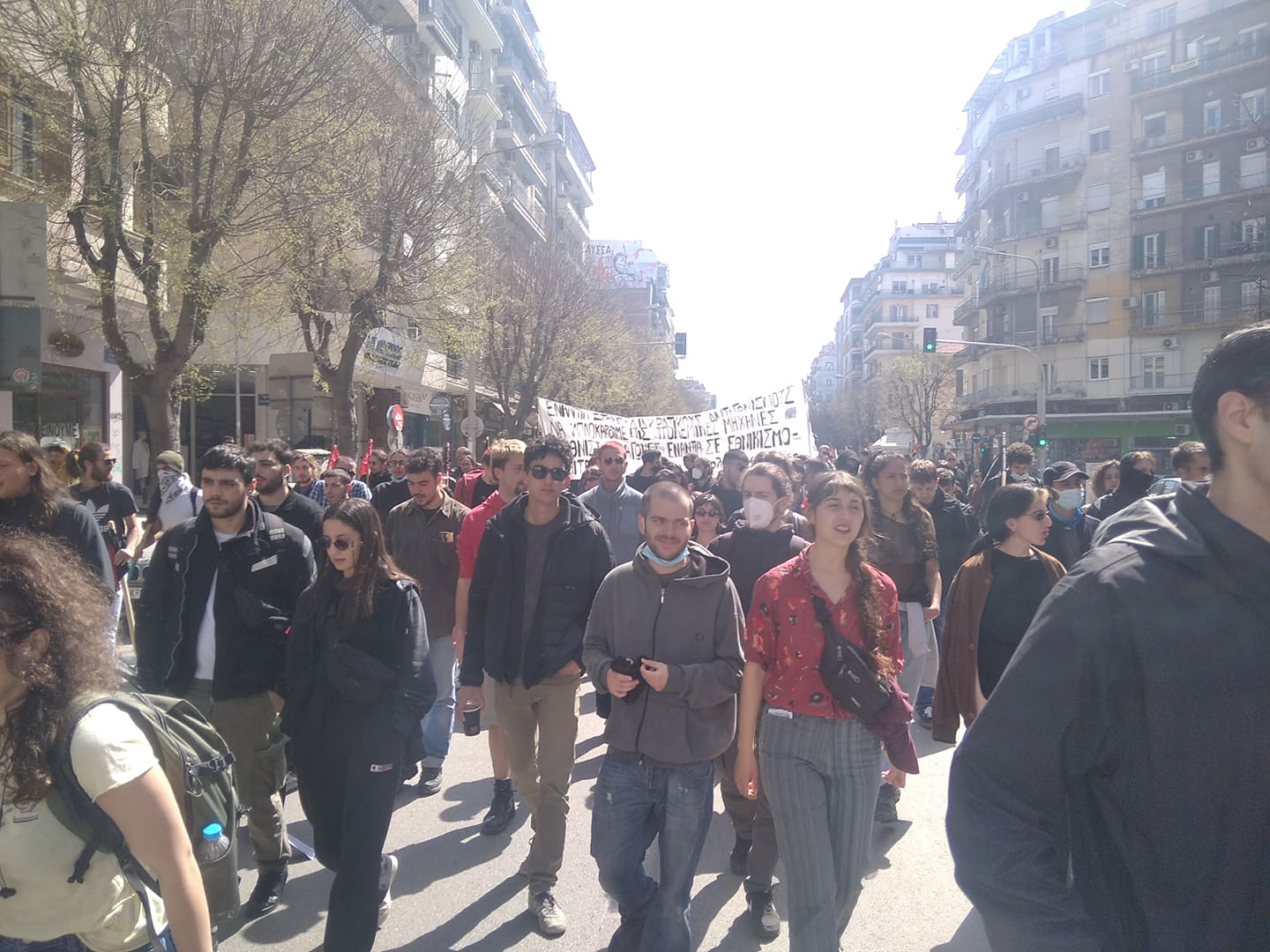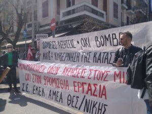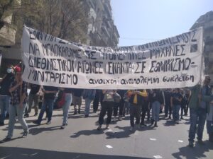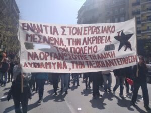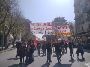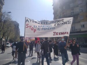 Με συνθήματα ενάντια στην φτώχεια και τον πόλεμο ξεκίνησε λίγο μετά τις 11 η πορεία πρωτοβάθμιων σωματείων, κινηματικών συλλογικοτήτων και οργανώσεων της Αριστεράς και του αντιεξουσιαστικού χώρου από την Καμάρα.