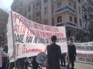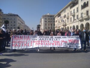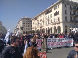 Στις κινητοποιήσεις συμμετείχαν και οι φοιτητές του ΔΙΠΑΕ που διαμαρτύρονται στη μεταφορά των σχολών τους από τη Θεσσαλονίκη στις Σέρρες.