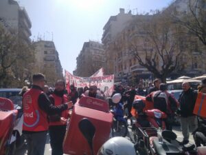 Τις κινητοποιήσεις ξεκίνησαν οι διανομείς που πραγματοποίησαν μοτοπορεία σε κεντρικούς δρόμους της πόλης και στη συνέχεια βρέθηκαν στην κεφαλή της πορείας του ΠΑΜΕ.