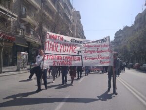 Η πορεία κατέληξε στο ΥΜΑΘ ενώ συλλογικότητες της πόλης διαδήλωσαν μέχρι το εγκαταλελειμμένο νοσοκομείο Λοιμωδών όπου πραγματοποιούν συμβολική κατάληψη με αίτημα το άνοιγμά του.