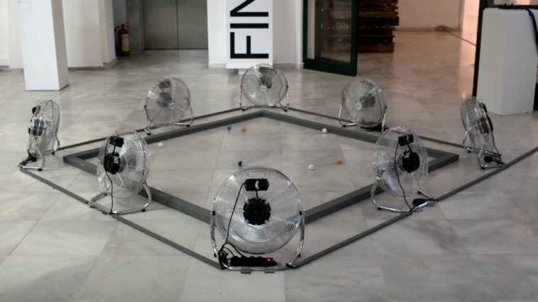 Σε ένα οριοθετημένο από ανεμιστήρες χώρο γεμάτο με μπαλάκια ping-pong, όσοι/ες/α τον επισκέπτονται, προσκαλούνται να εμπλακούν σε ένα κινητικό παιχνίδι ανοιχτής δομής που συνομιλεί με την τυχαιότητα.