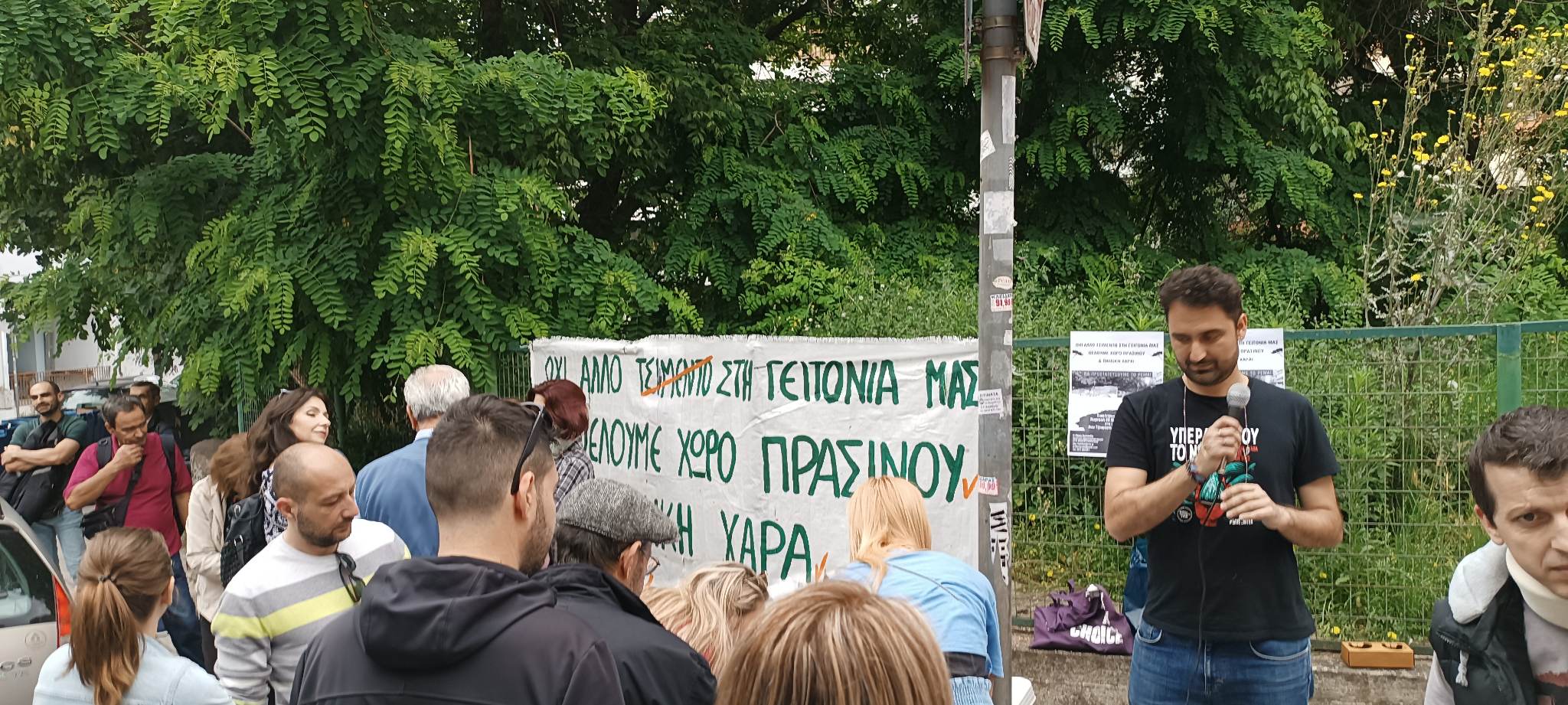 Κινητοποίηση για να παραμείνει ελεύθερος ένας χώρος πρασίνου, που μέχρι πριν λίγα χρόνια λειτουργούσε ως παιδική χαρά, πραγματοποίησαν την Κυριακή το πρωί κάτοικοι της Κάτω Τούμπας μετά από κάλεσμα της δημοτικής παράταξης στον Δήμο Θεσσαλονίκης «Η Πόλη Ανάποδα».