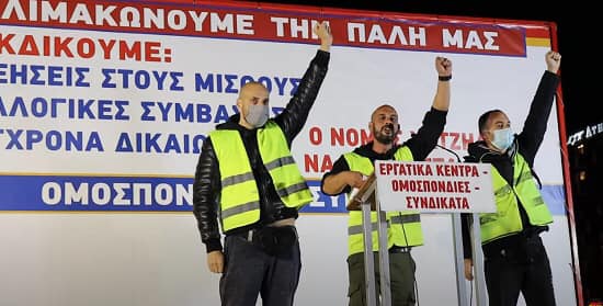 Πριν προλάβει να ολοκληρώσει τα λόγια του το σύνθημα «Χωρίς εσένα γρανάζι δεν γυρνά, εργάτη μπορείς χωρίς αφεντικά» δόνησε την ατμόσφαιρα.