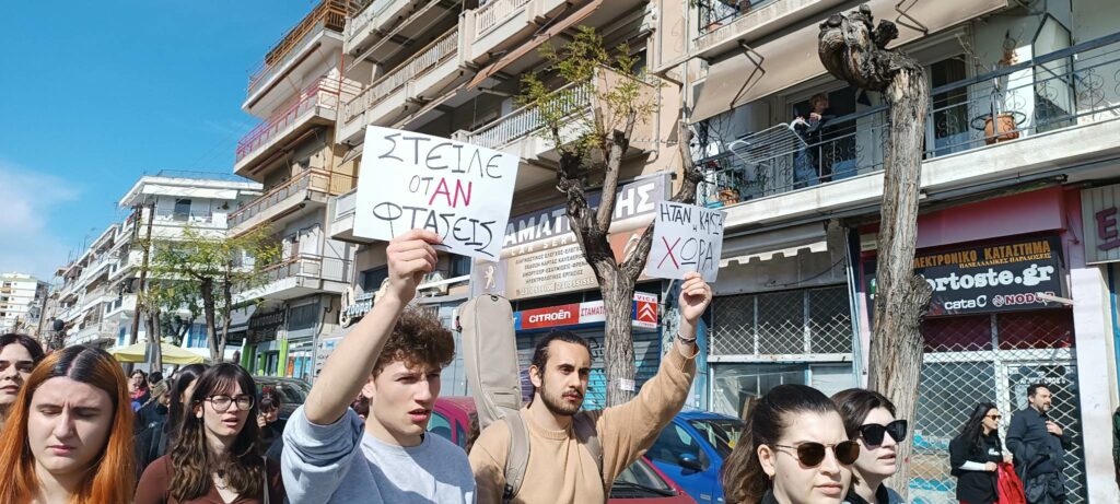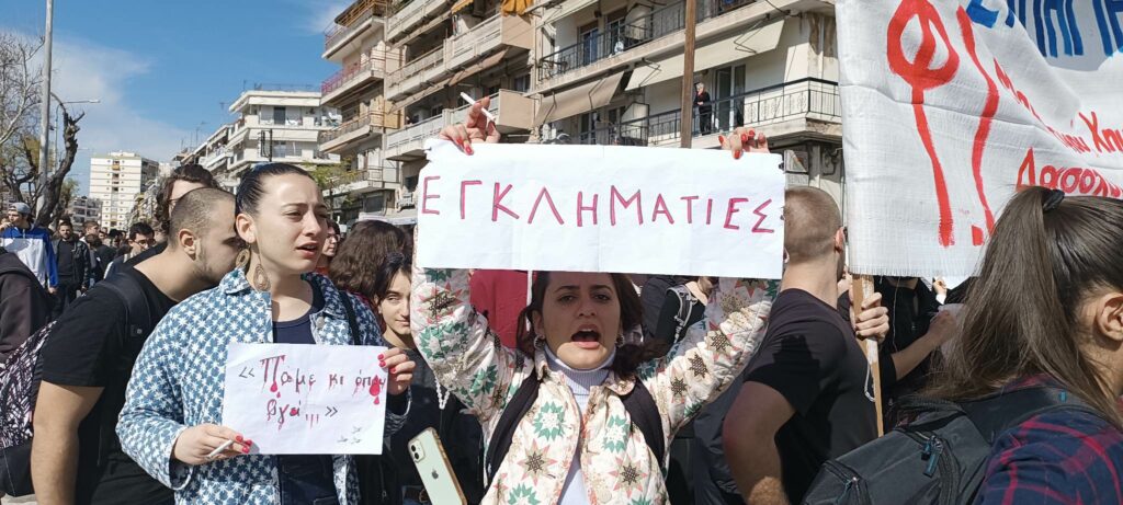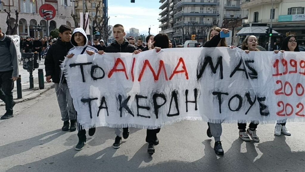 Δεκάδες ήταν τα Γυμνάσια και τα Λύκεια από όλες τις περιοχές της Θεσσαλονίκης που κατέβηκαν οργανωμένα και με δικά τους πανό για να φωνάξουν: «Στέρεψαν τα δάκρυα και έγιναν οργή, η νέα γενιά δεν σας συγχωρεί».