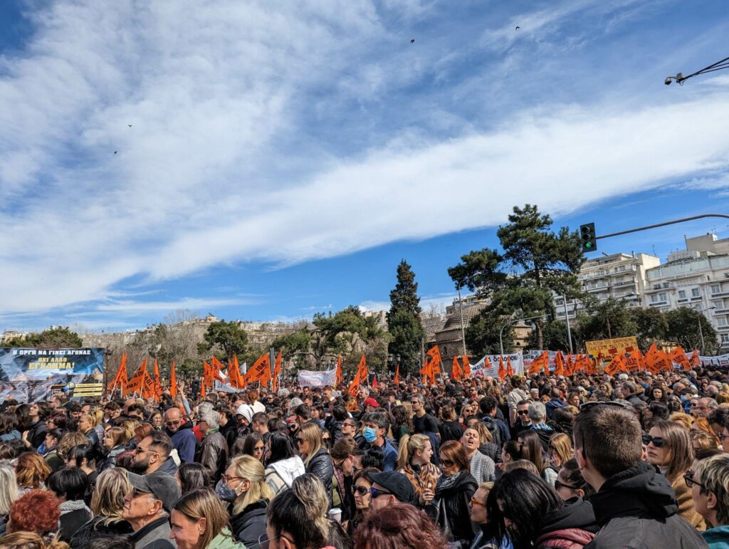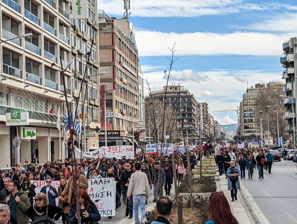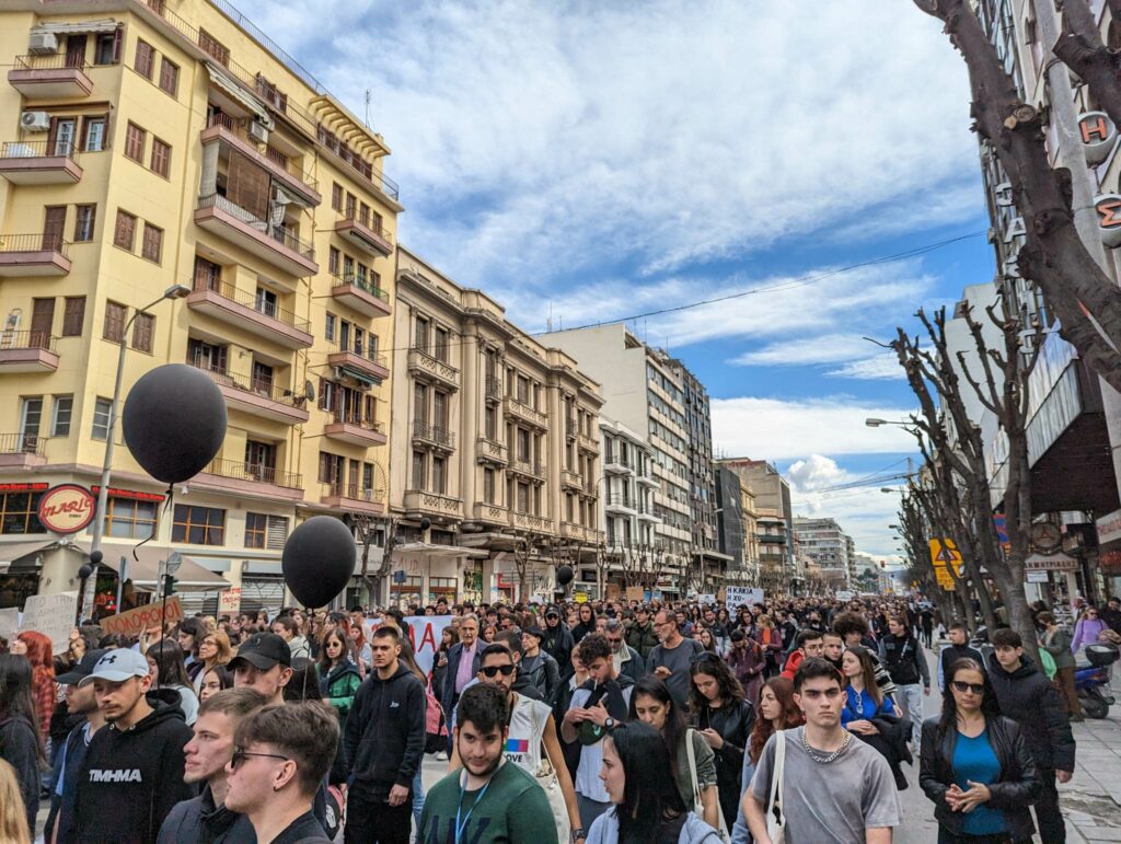 Περισσότεροι από 40.000 άνθρωποι όλων των ηλικιών εκτιμάται ότι συμμετείχαν στη μεγαλύτερη πορεία των τελευταίων δεκαετιών στη Θεσσαλονίκη. Τον τόνο στην πορεία που ξεχύθηκε στους δρόμους της πόλης έδωσαν οι νέοι άνθρωποι, χιλιάδες μαθητές και φοιτήτριες βρέθηκαν στην απεργιακή συγκέντρωση για να φωνάξουν «ως εδώ!» ζητώντας να αποδοθούν ευθύνες για το έγκλημα στα Τέμπη.