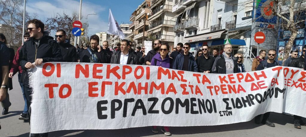 Μια μεγαλειώδης απεργιακή και συγκέντρωση και πορεία πραγματοποιήθηκε το μεσημέρι της Τετάρτης 8 Μαρτίου στη Θεσσαλονίκη, στο πλαίσιο της 24ωρης απεργίας της ΑΔΕΔΥ και του Εργατικού Κέντρου της πόλης, στη μνήμη των θυμάτων του σιδηροδρομικού δυστυχήματος στα Τέμπη.