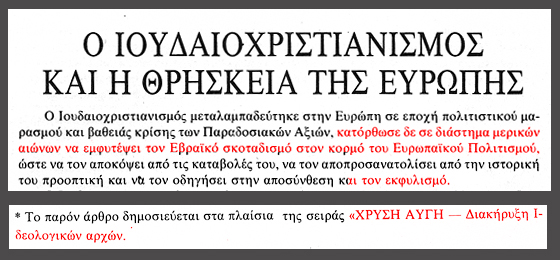 Στα 1988, το περιοδικό «Χρυσή Αυγή» έγραφε ότι «ο ιουδαιοχριστιανισμός κατάφερε να εμφυτεύσει τον εβραϊκό σκοταδισμό στην Ευρώπη σε μια εποχή κρίσης των αξιών» (βλ. εδώ), ενώ και το νεανικό χρυσαυγίτικο περιοδικό «Αντεπίθεση» σημείωνε στις 5.1.2000, στο άρθρο «Ο Λευκός Εωσφόρος του 21ου αιώνα», ότι «ο Εωσφόρος είναι Αυτός που φέρνει το Λευκό φως». Σε σχετική ερώτηση, ο Μιχαλολιάκος απαντά με ειρωνείες («γελοιότητες περί δήθεν σατανισμού»).