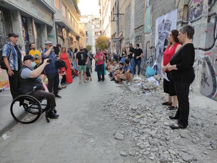 Κυριακή 23 Μαΐου 2021. Η Κίνηση Ανάπηρων Καλλιτεχνών στο σημείο που χτίστηκε η μπάρα προσβασιμότητας του Θεάτρου Εμπρός. Χιλιάδες άνθρωποι πέρασαν και σήμερα από το θέατρο, για να τραγουδήσουν, να χορέψουν, να συζητήσουν, να υπερασπιστούν έναν ελεύθερο αυτοδιαχειριζόμενο χώρο.