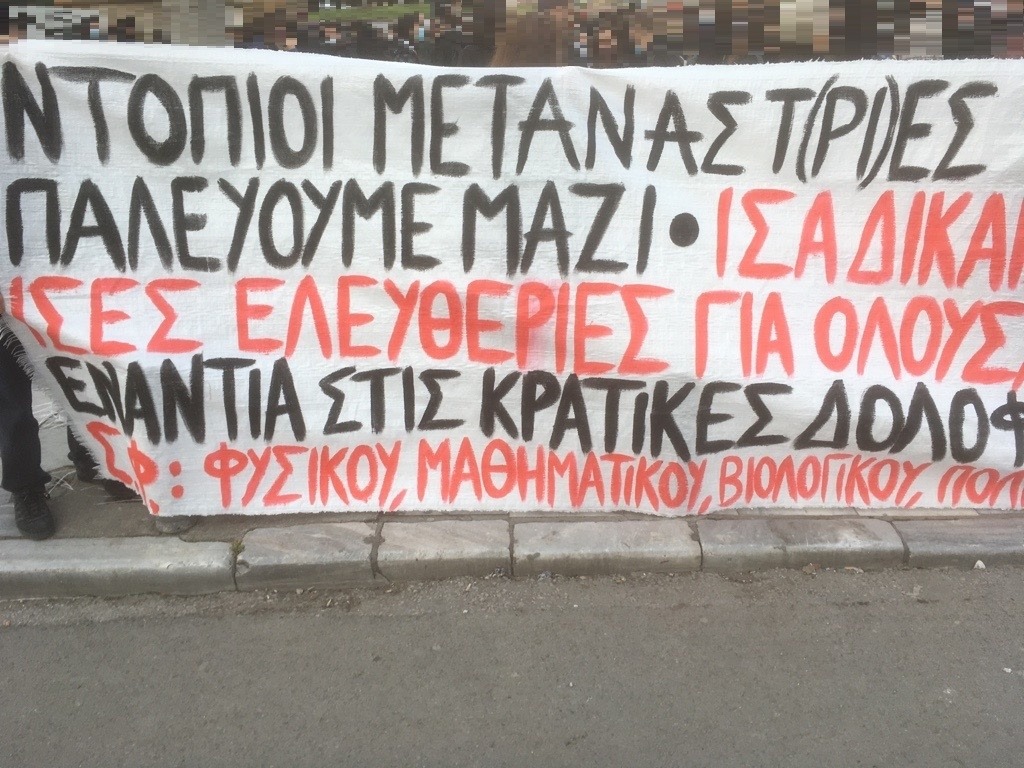 «Έναν χρόνο πριν: Το ελληνικό κράτος, σε συνεργασία µε ντόπιους φασίστες, εµποδίζει ανθρώπους να περάσουν τα σύνορά του µε τα πιο βίαια µέσα. Τουλάχιστον δύο µετανάστες και µία µετανάστρια δολοφονήθηκαν από ελληνικές σφαίρες. Η κρατική ρητορική τις µέρες εκείνες εγκαινίασε µια νέα εποχή. Οι µετανάστ(ρι)ες αντιµετωπίζονται πλέον ανοικτά ως στρατιωτική απειλή.Από τότε: Το κράτος αποκαλεί τις µετανάστριες και τους µετανάστες υγειονοµικό κίνδυνο και τους φυλακίζει στα camps, δίχως περίθαλψη εν µέσω πανδηµίας. Η αστυνοµία τις/τους απαγάγει από τις πόλεις και τους/τις «επαναπροωθεί» κρυφά στην Τουρκία. Τα καθηµερινά pushbacks στο Αιγαίο παρουσιάζονται ως «επιτυχής φύλαξη των συνόρων». Οι µετανάστ(ρι)ες αποκλείονται από κάθε µορφή κοινωνικής πρόνοιας. Με κοινούς αγώνες ντόπιων-μεταναστ(ρι)ών παλεύουμε για ελευθερία μετακίνησης, χαρτιά, σπίτια, πρόσβαση σε υγεία και περίθαλψη για όλους/ες, για να σταματήσουν τα pushbacks!