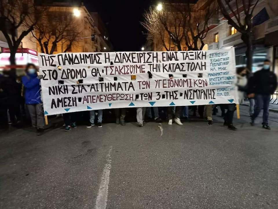 «Δώστε λεφτά για την υγεία και όχι για το ΝΑΤΟ και την αστυνομία» ήταν ένα από τα συνθήματα των χιλιάδων ανθρώπων που διαδήλωσαν για την τραγική κατάσταση στην οποία βρίσκεται το Ε.Σ.Υ., για την άγρια καταστολή της περιόδου αλλά και για την κυβερνητική πολιτική που έχει σαφές ταξικό πρόσημο τόσο σε σχέση με την διαχείριση της πανδημίας, όσο και με τα νομοσχέδια που η κυβέρνηση περνάει εδώ και έναν χρόνο.
