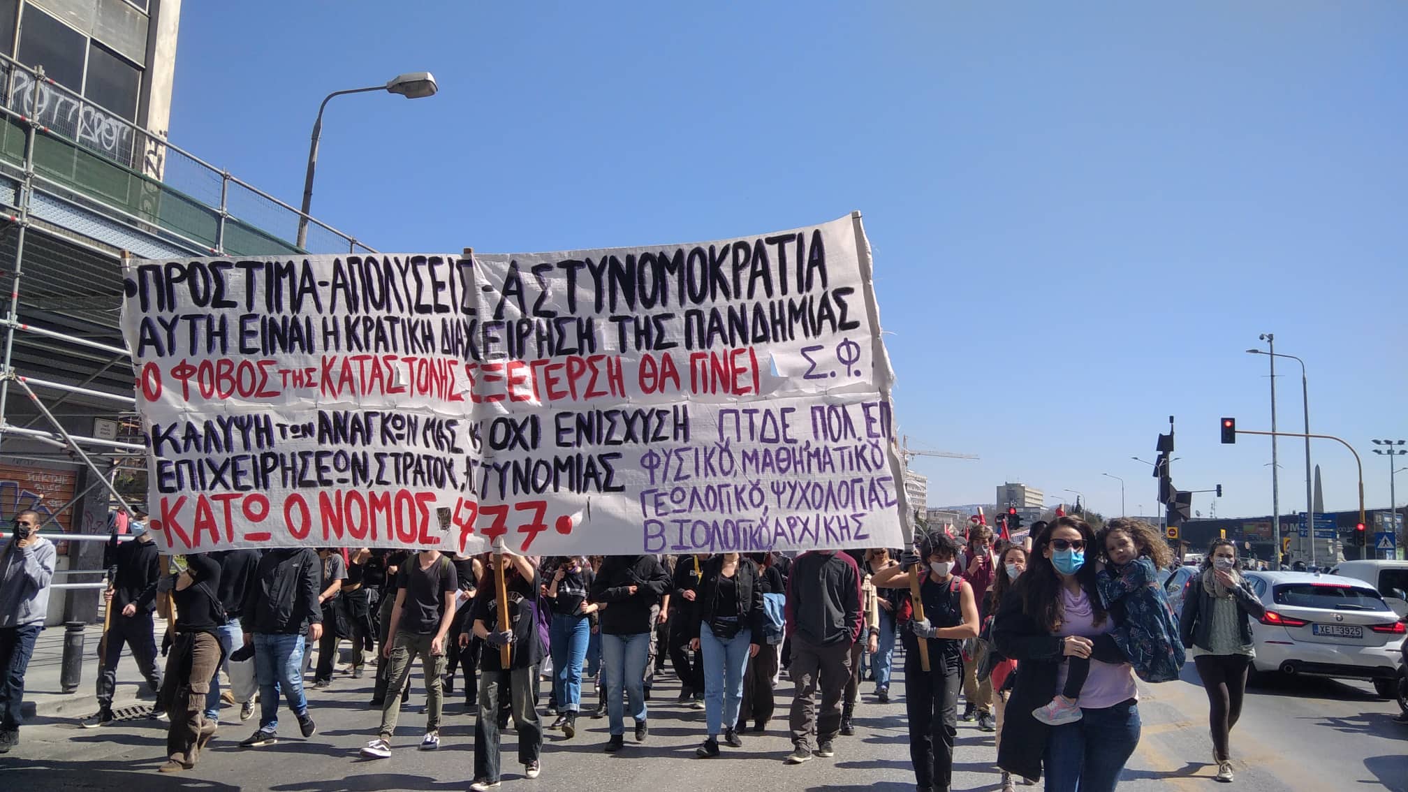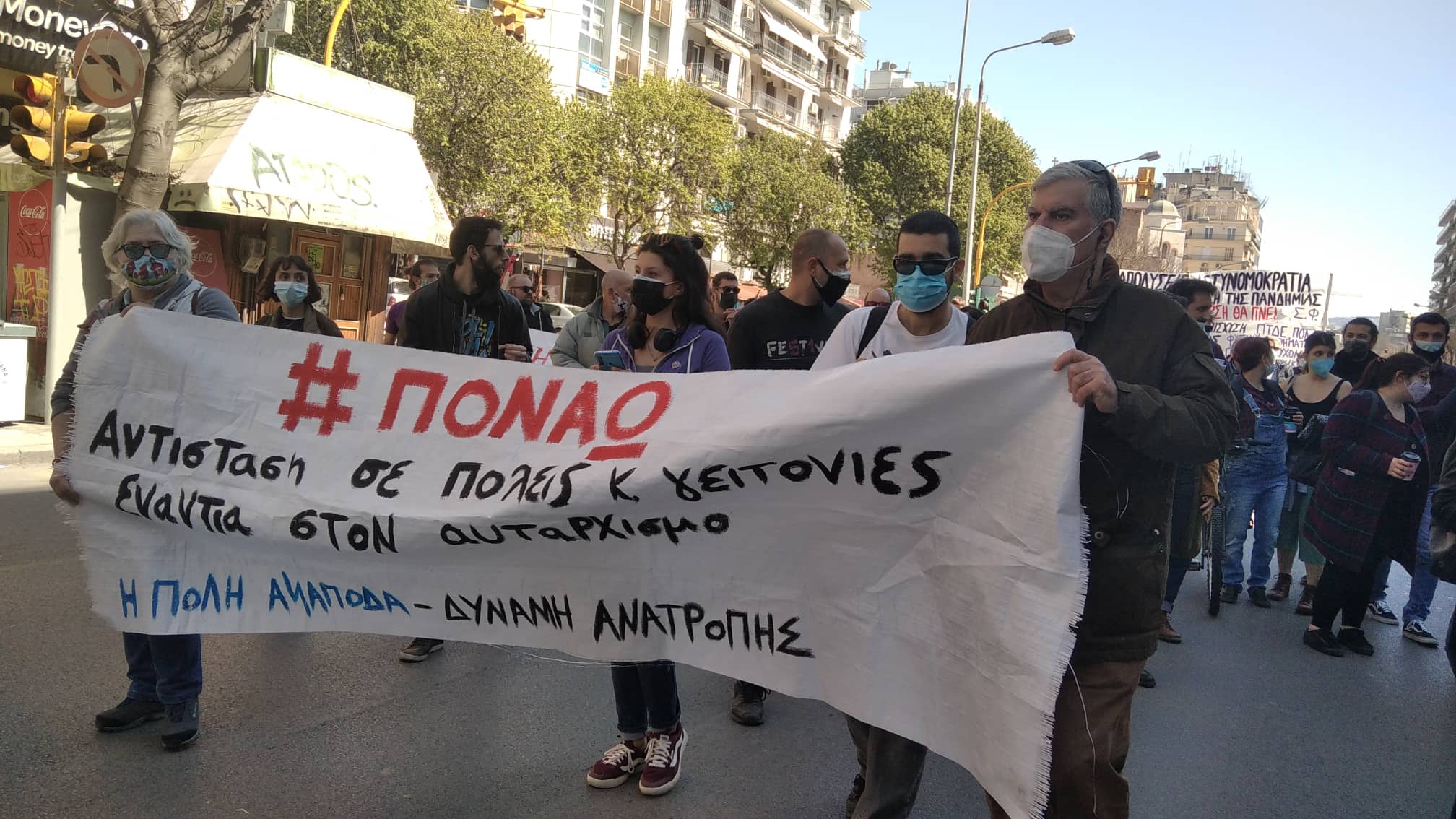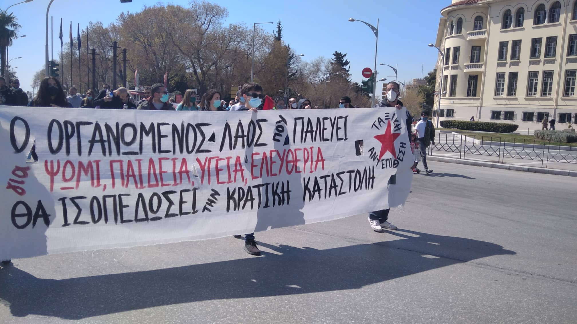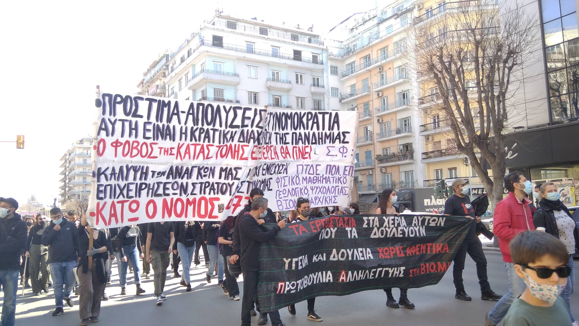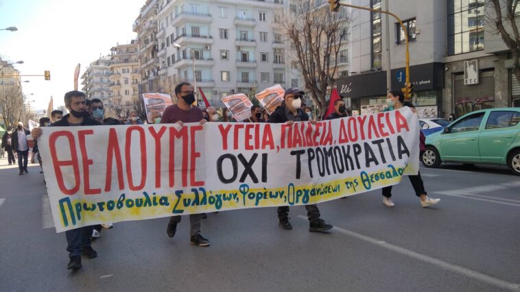 Μαζική διαδήλωση πραγματοποιήθηκε σήμερα στους δρόμους της Θεσσαλονίκης ενάντια στην καταστολή, την αστυνομοκρατία, τα περιοριστικά μέτρα και την κυβερνητική τρομοκρατία με αιτήματα δωρεάν υγεία, παιδεία και δημοκρατικά δικαιώματα. Πλήθος ατόμων ανταποκρίθηκε στο κάλεσμα της «Πρωτοβουλίας οργανώσεων, συλλόγων και φορέων» ενώ το παρών έδωσαν εργατικά σωματεία, πολιτικές οργανώσεις και δημοτικά σχήματα.