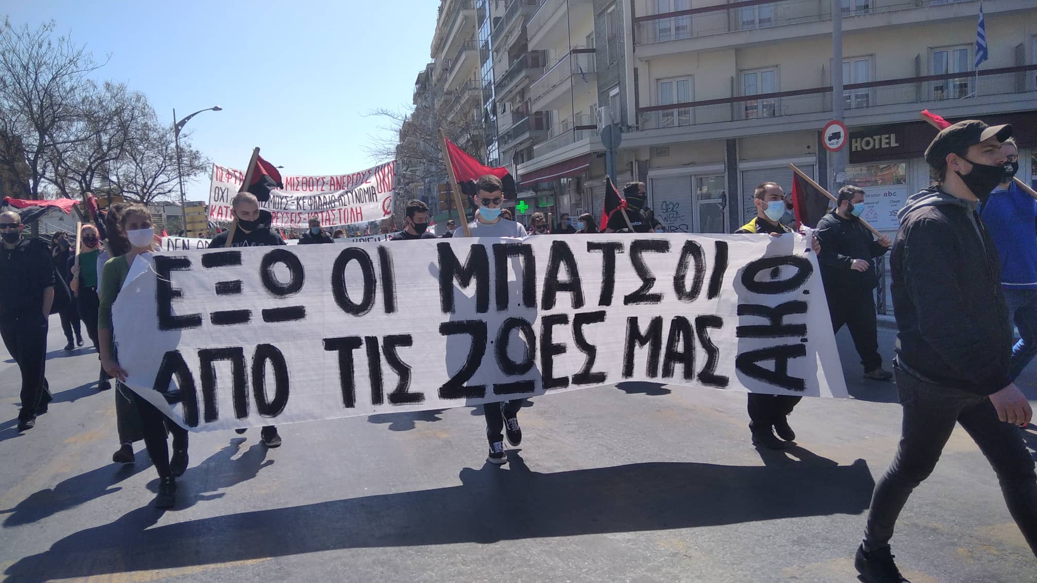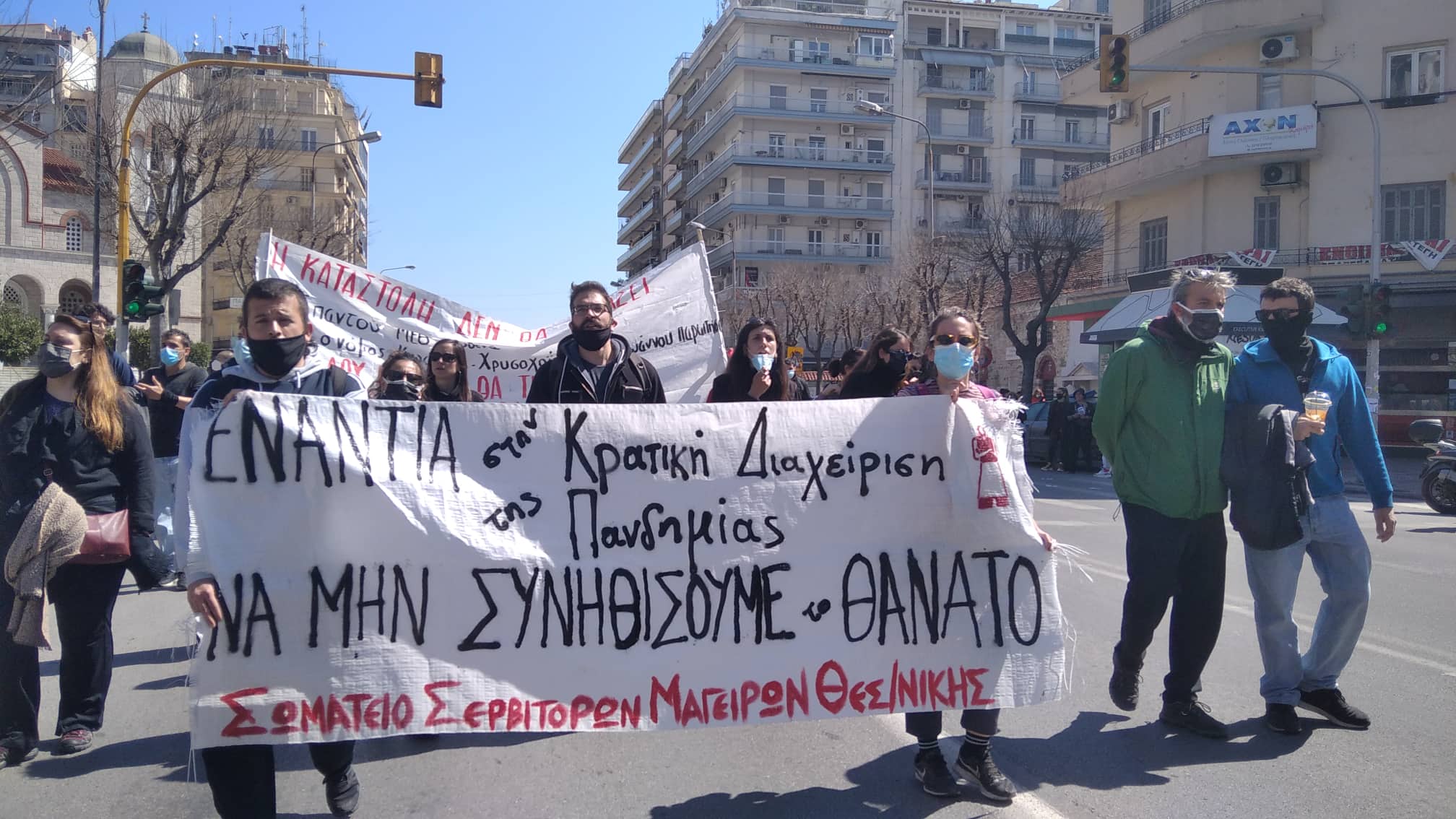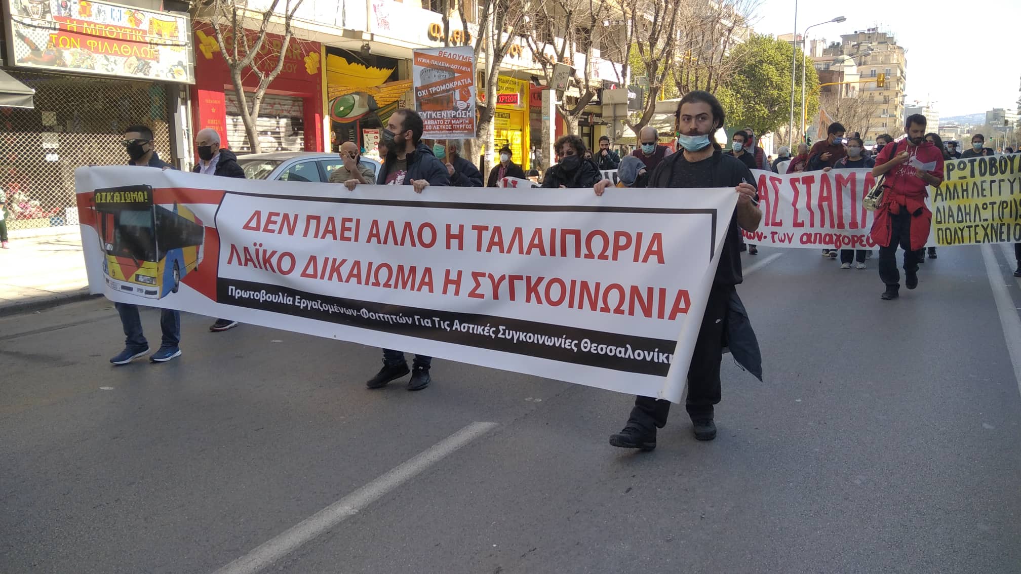 «Τα νέα κυβερνητικά μέτρα για τον περιορισμό των μετακινήσεων, τα οποία εφαρμόζονται στο όνομα της δήθεν υγειονομικής προστασίας, είναι στην πραγματικότητα μέτρα κοινωνικής καταστολής, για να αντιμετωπίσουν την αντίδρασή μας στην γιγάντια φτώχεια-ανεργία-ανισότητα, που δημιουργεί η κρίση του συστήματός τους και τα διαρκή αντεργατικά μέτρα. Την ίδια ώρα που οι λιγοστές ΜΕΘ είναι επικίνδυνα γεμάτες και τα νοσοκομεία υποστελεχωμένα και ρημαγμένα, την ώρα που τα μέσα μαζικής μεταφοράς ξεχειλίζουν τις ώρες αιχμής και οι μαζικοί χώροι δουλειάς στοιβάζουν τους εργαζόμενους χωρίς επαρκή μέτρα προστασίας, οι κυβερνητικοί περιορισμοί στην καθημερινή μετακίνηση, δεν έχουν κανένα υγειονομικό περιεχόμενο, και στο μόνο που στοχεύουν είναι να μεταφέρουν την ευθύνη της διάδοσης του ιού στο λαό» αναφερόταν στο κοινό κάλεσμα Συλλόγων, Φορέων και Οργανώσεων της Θεσσαλονίκης.