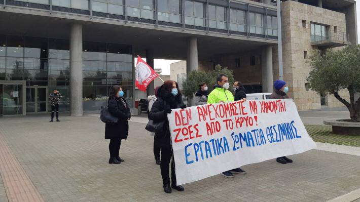 Παράσταση διαμαρτυρίας στο Δημαρχείο Θεσσαλονίκης πραγματοποίησαν το πρωί της Πέμπτης εκλεγμένοι συνδικαλιστές από εργατικά σωματεία της πόλης και το ΠΑΜΕ με αφορμή το τραγικό περιστατικό του θανάτου 60χρονου από υποθερμικό σοκ, το μεσημέρι της Τρίτης.