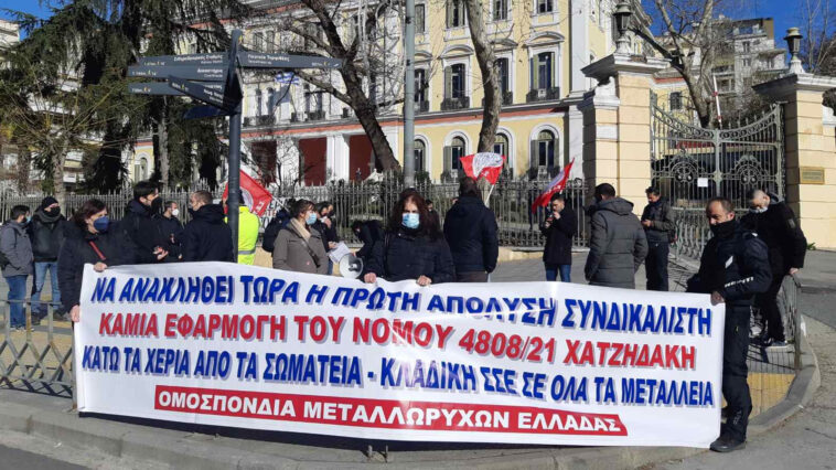 Παράσταση διαμαρτυρίας στο υπουργείο Μακεδονίας – Θράκης στη Θεσσαλονίκη πραγματοποιούν εργατικά Σωματεία της Κεντρικής Μακεδονίας συνεχίζουν τον αγώνα για να παρθεί πίσω η απόλυση του προέδρου του Σωματείου Εργαζομένων στα Μεταλλεία και τα Λατομεία της Βόρειας Ελλάδας (ΣΕΜΛΑ) Νίκου Τζανετή. Στο πλευρό τους, βρίσκεται και ο Λεωνίδας Στολτίδης, βουλευτής του ΚΚΕ.