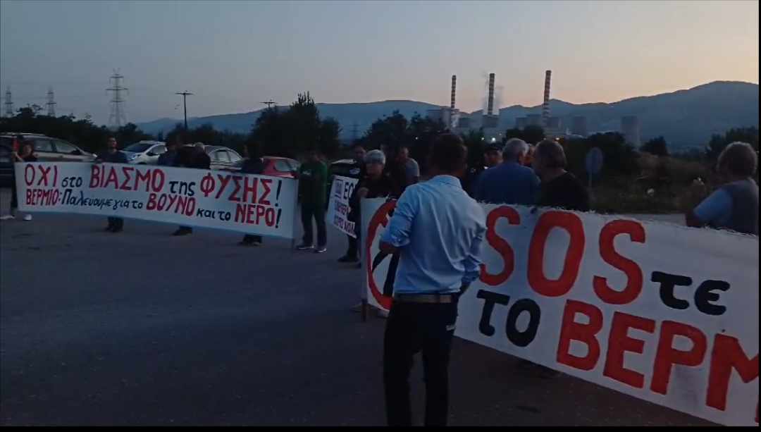 Συγκέντρωση διαμαρτυρίας κατά της εγκατάστασης 59 ανεμογεννητριών στο Βέρμιο Κοζάνης πραγματοποίησαν νωρίς το πρωί της Παρασκευής μέλη συλλογικοτήτων της Δυτικής Μακεδονίας, πραγματοποιώντας ολιγόλεπτο αποκλεισμό του δρόμου που οδηγεί στον Ατμοηλεκτρικο Σταθμό Αγίου Δημητρίου.