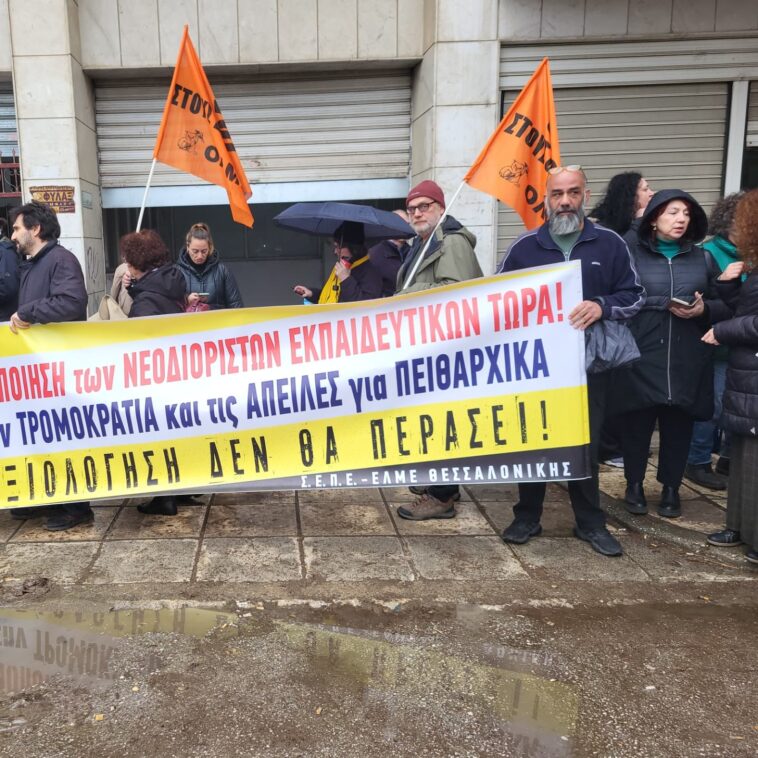 Διαμαρτυρία στην Διεύθυνση Δευτεροβάθμιας Εκπαίδευσης Ανατολικής Θεσσαλονίκης πραγματοποιήθηκε την Τρίτη το μεσημέρι από ΕΛΜΕ και Συλλόγους Εκπαιδευτικών ενάντια στις πειθαρχικές διώξεις και την αξιολόγηση.