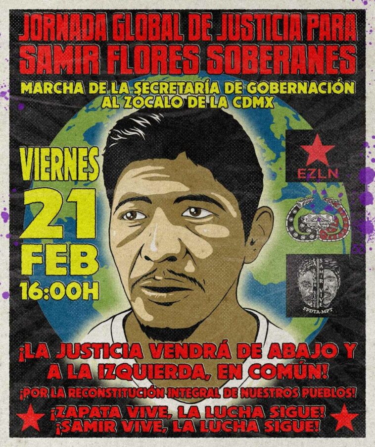 Ο Σαμίρ Φλόρες, ιθαγενής ναουάτλ, υπερασπιστής της γης, φύλακας της ζωής, δολοφονήθηκε εν ψυχρώ στις 20 Φεβρουαρίου 2019 μπροστά στο σπίτι του στο Αμιλσίνγκο της πολιτείας Μορέλος. Οι δολοφόνοι του ήθελαν να σωπάσει μια δυνατή φωνή ενάντια στο Proyecto Integral Morelos, ένα μεγαλεπήβολο έργο της κυβέρνησης του Μεξικού το οποίο αποτελούσε και αποτελεί απειλή για το περιβάλλον και τις τοπικές κοινότητες.