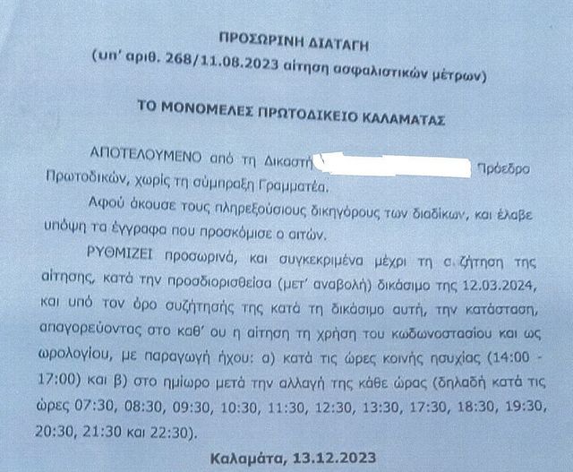 «Μέχρι την συζήτηση της υπόθεσης στις 12.3.2024 ο ιερός ναός είναι υποχρεωμένος να συμμορφωθεί με την προσωρινή διαταγή της Δικαστή του Πρωτοδικείου Καλαμάτας και να απέχει από την χρήση του κωδωνοστασίου κατά τον περιγραφόμενο τρόπο» σημειώνει στην ανάρτησή του.