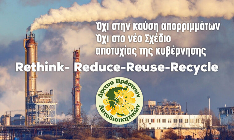 Επανάχρηση – Ανακύκλωση – Ταφή υπολειμμάτων. Το νέο σχέδιο προδήλως οδηγεί σε καύση και ταφή.