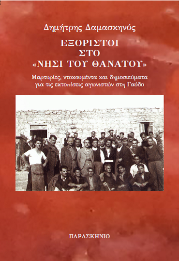 Δημήτρης Δαμασκηνός, Εξόριστοι στο «Νησί του Θανάτου». Μαρτυρίες, ντοκουμέντα και δημοσιεύματα για τις εκτοπίσεις αγωνιστών στη Γαύδο. Μαρτυρίες εξορίστων (1929-1951), εκδ. Παρασκήνιο, Αθήνα 2020, σσ. 364 + φωτογραφίες, χάρτες, κατάλογοι, ευρετήρια και εκτενής βιβλιογραφία.