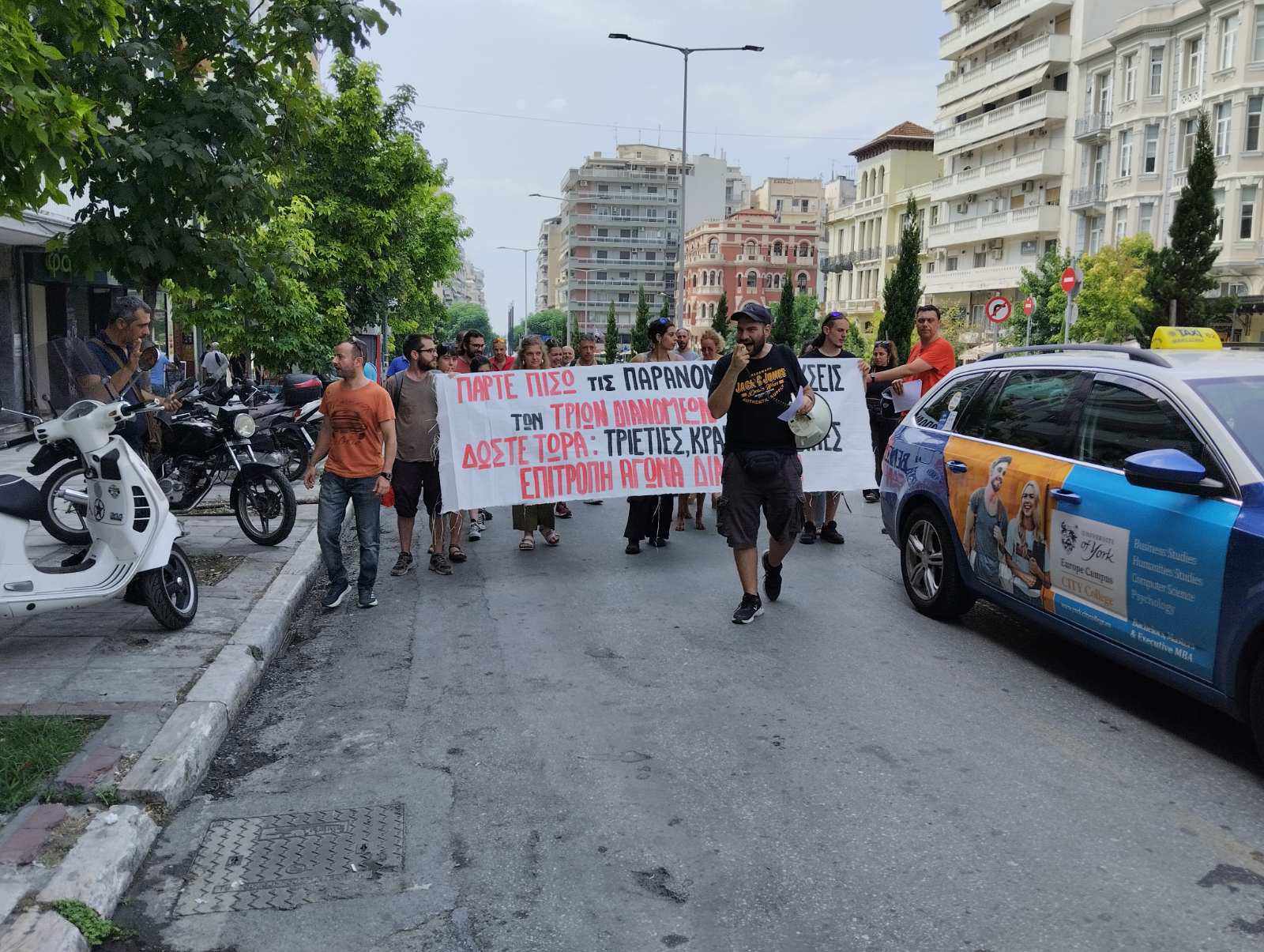 Το πρωί της Παρασκευής πραγματοποιήθηκε συγκέντρωση διαμαρτυρίας στη συμβολή των οδών Εγνατία με Αριστοτέλους με αιτήματα την άμεση επαναπρόσληψη των τριών διανομέων, την επαναλειτουργία του τμήματος delivery καθώς και να δοθούν άμεσα Μέσα Ατομικής Προστασίας.