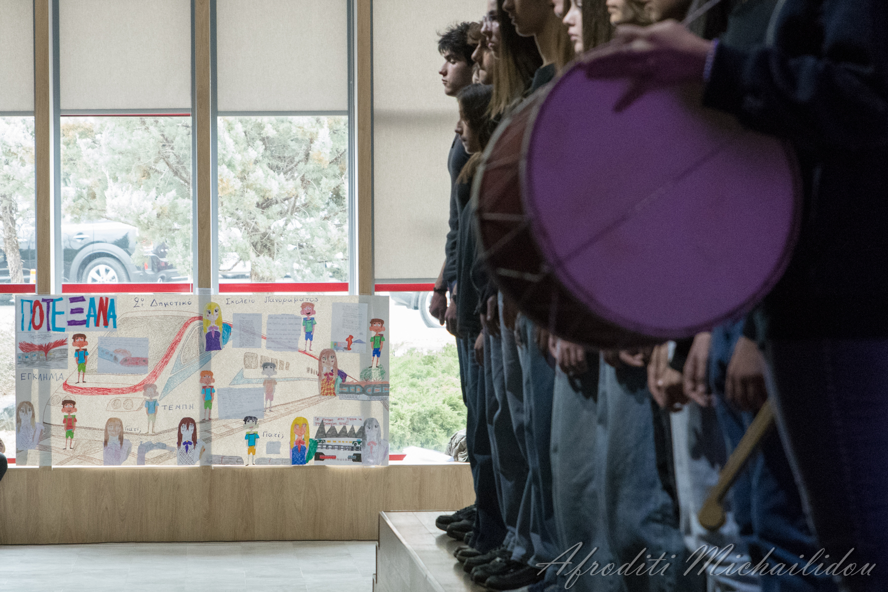 Τον τελικό επίλογο της εκδήλωσης, τον έγραψε η επόμενη γενιά των Τεμπών, οι νέοι μαθητές του 1ου Γυμνασίου με ένα εκπληκτικό δρώμενο, καθώς ακούγονταν το «Έχε το νου σου στο παιδί, ψέματα λένε» του Σιδηρόπουλου. Ενάντια στην εκκωφαντική σιωπή των πολιτικών και της μερίδας της κοινωνίας που αδιαφορεί, τα παιδιά κραύγασαν κατ’ επανάληψη με όλο τους το είναι, δυνατότερα και από το κρουστό που χτύπαγε μαθήτρια καταιγιστικά μέσα στα σωθικά όλων: